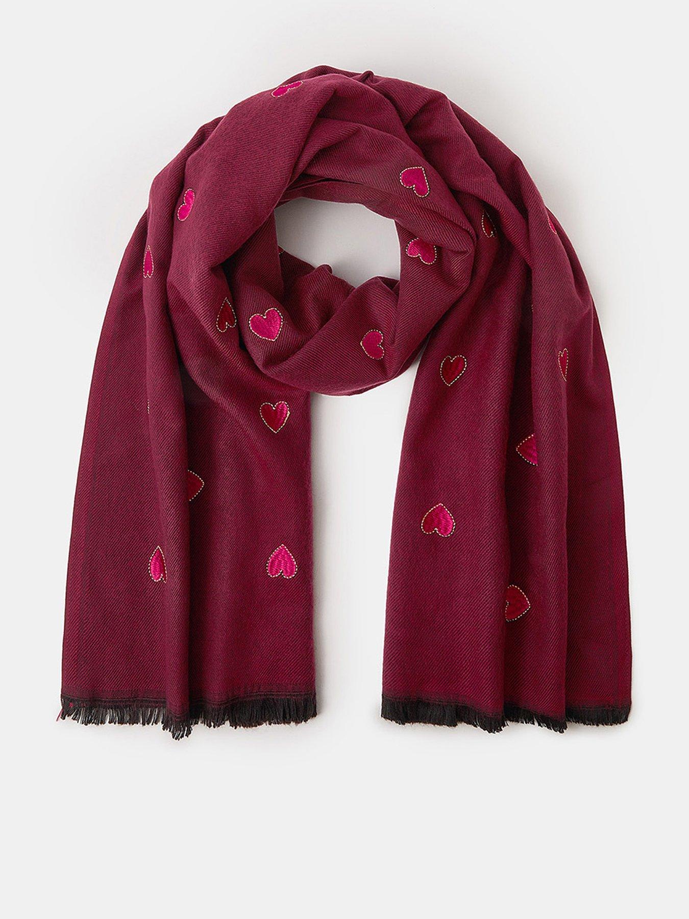 Accessorize Heart Embroidered Blanket Scarf - Burgundy