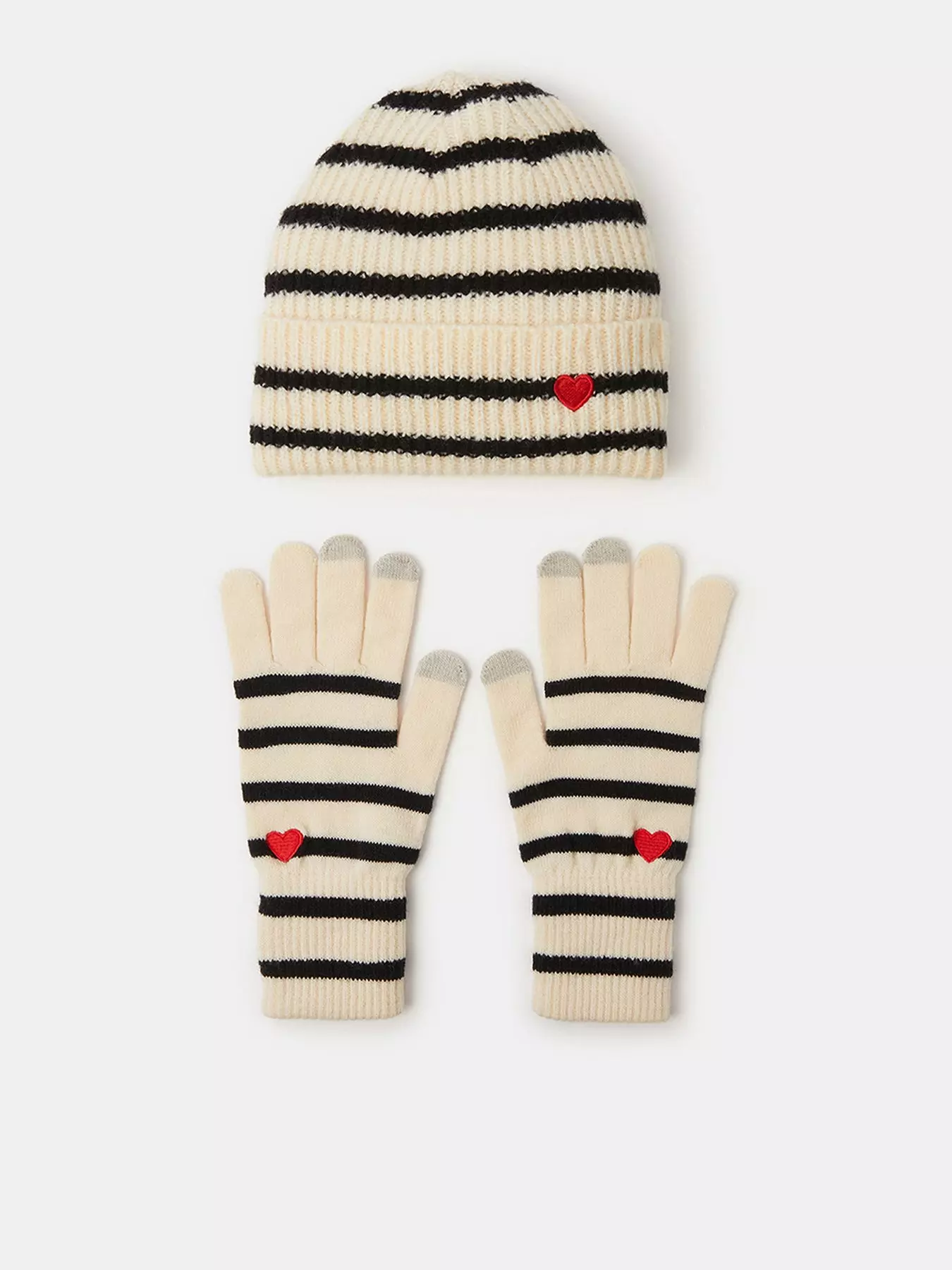 AccessorizeStripe Heart Beanie Hat & Gloves Set - Multi