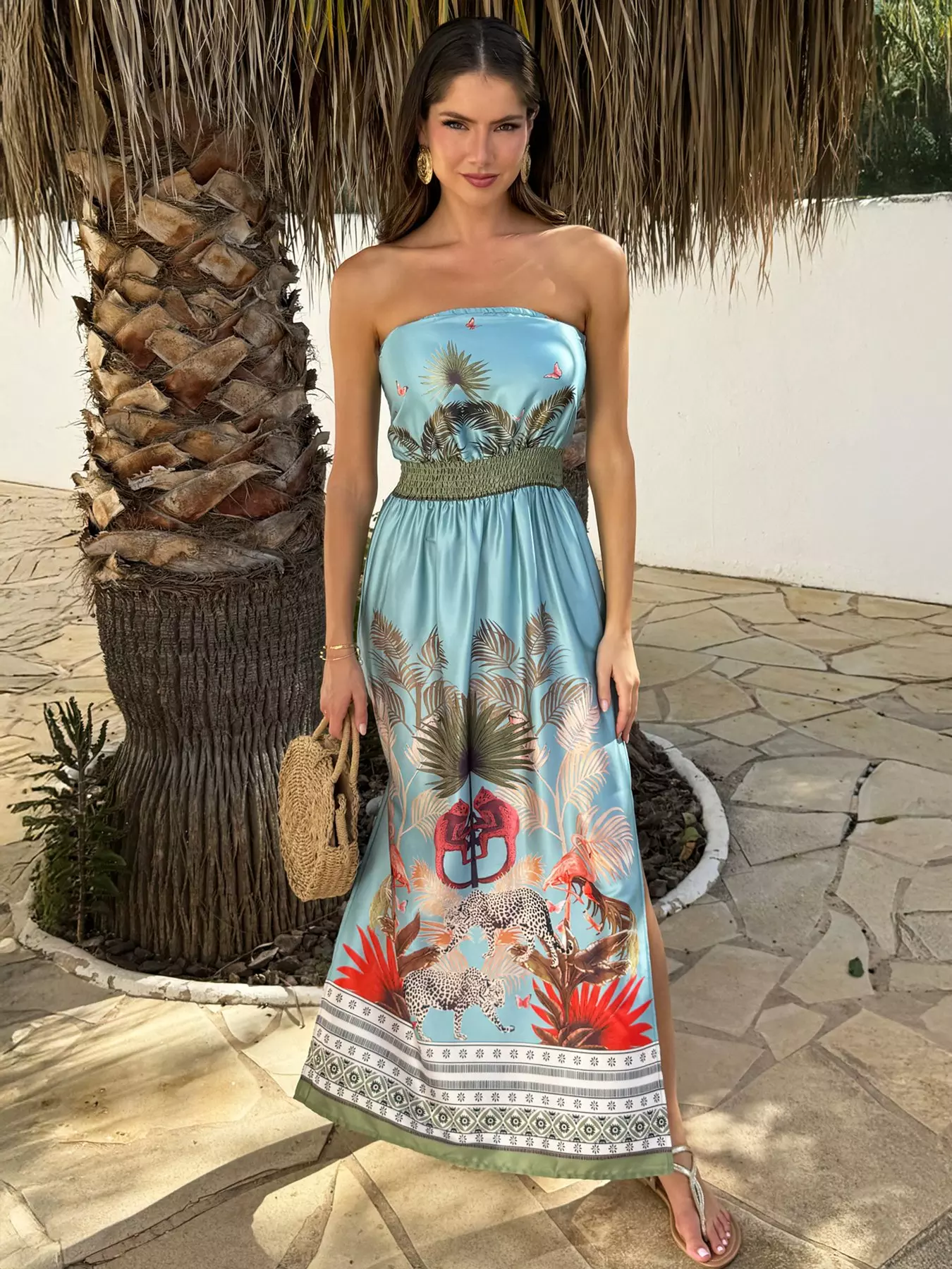 AX Paris Safari Print Strapless Shirred Waist Maxi Dress
