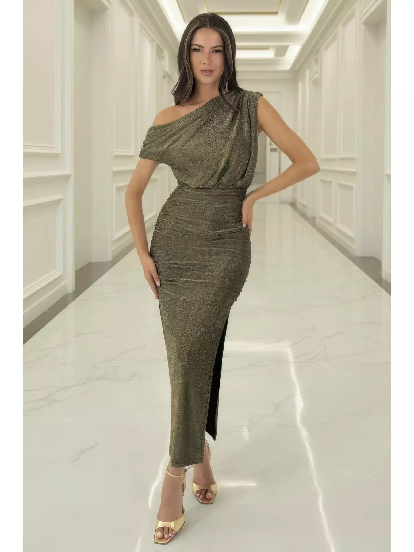 AX ParisSparkle Off The Shoulder Draped Top Midi Dress - Gold