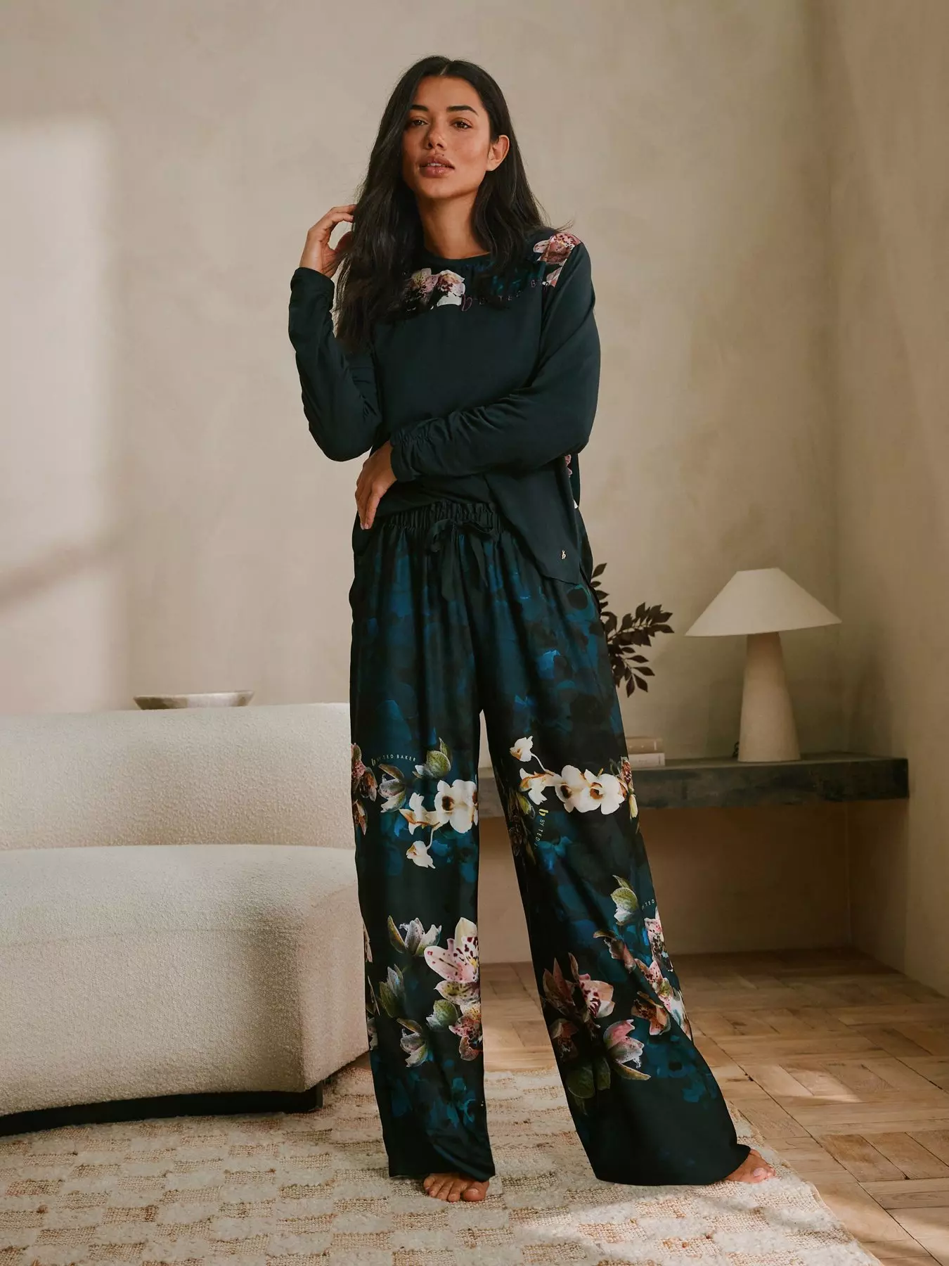 - Jersey Viscose Teal Floral Long Sleeve Pyjama - Teal by B By Ted Baker