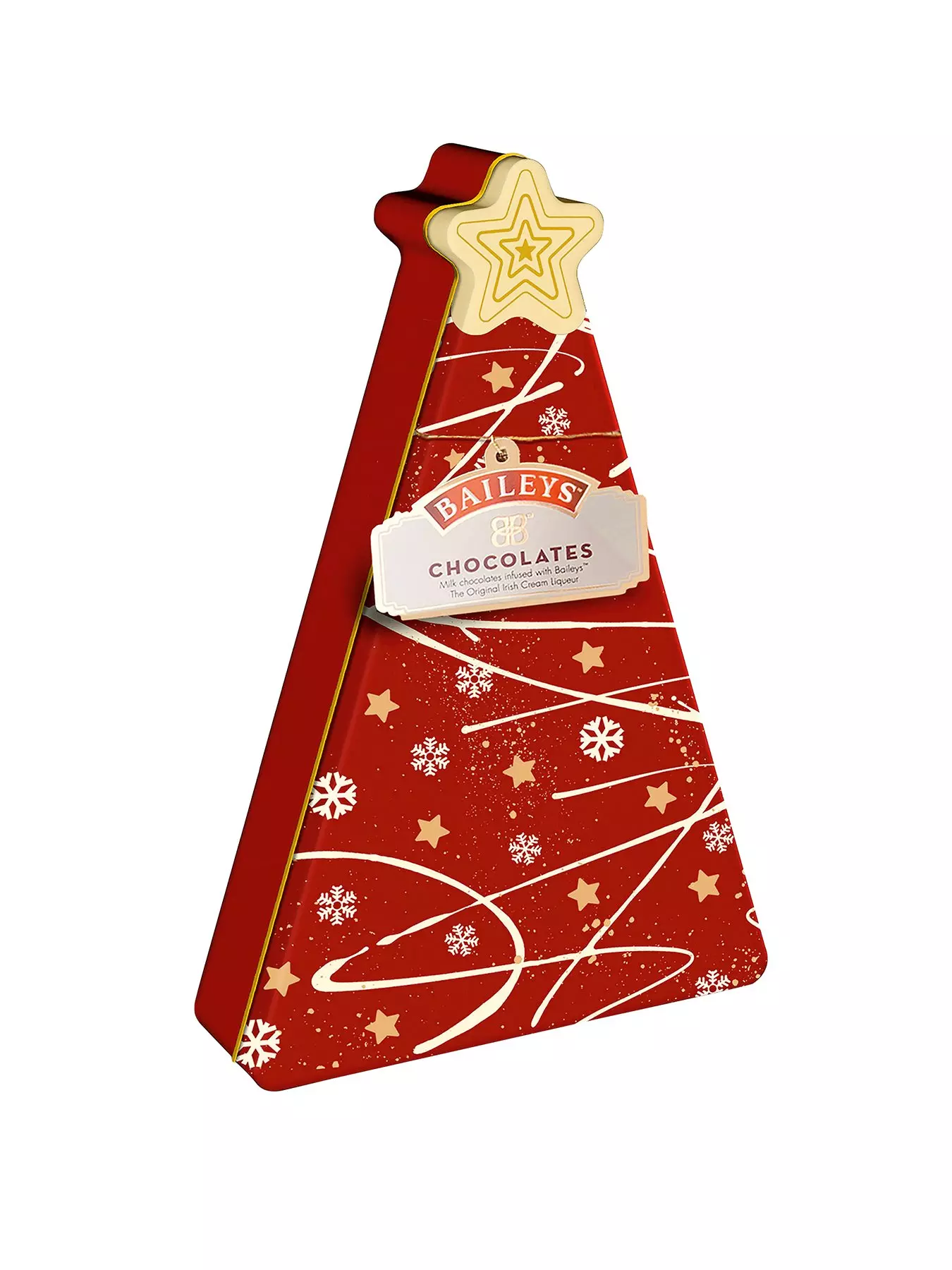E.A.N: 5 0 9 9 8 7 2 0 1 9 0 5 5Baileys milk chocolate twist wrapped truffles in Christmas tree tin