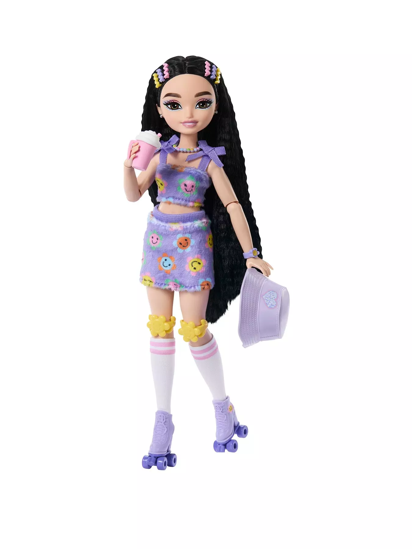 BarbieDream Besties Barbie Renee Roller Skating Fashion Doll with 12 Video & Food Themed Accessories