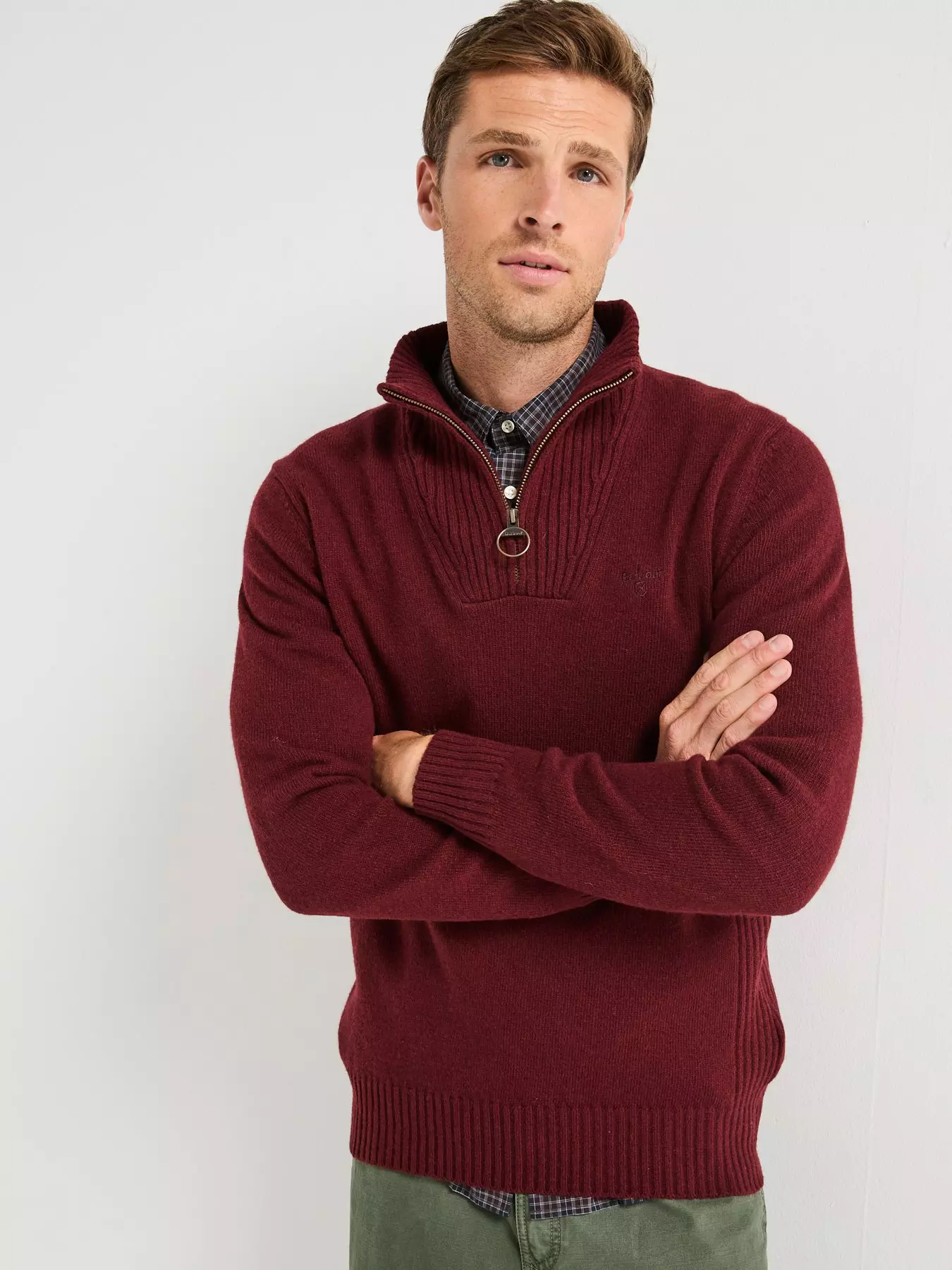 E.A.N: 5 0 2 0 9 8 5 5 8 0 4 6 0Barbour Essential Lambswool 1/4 Zip Knitted Jumper - Dark Red