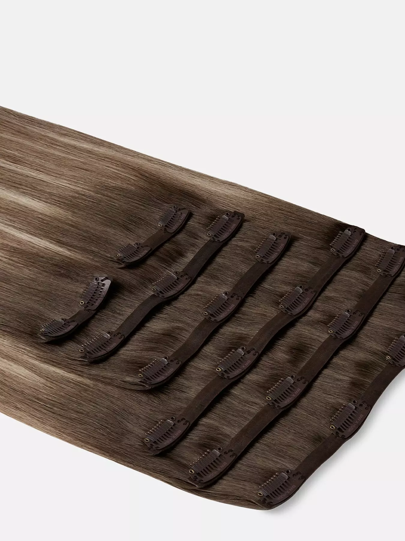 Experience the most natural-looking clip-in extensions with Beauty Works x Huda. This full 7-piece clip-in set of 100% Remy human hair, provides maximum coverage, blending effortlessly with your hair for a flawless finish.These lightweight extensions mimic the scalp for an undetectable, barely-there look. Add volume, fullness, or colour without the weight, perfect for concealing thinning areas or boosting your hair's natural thickness. The extensions allow you to experiment with colour, whether you're adding highlights, lowlights, or a contrasting hue, all without the commitment of dyes.