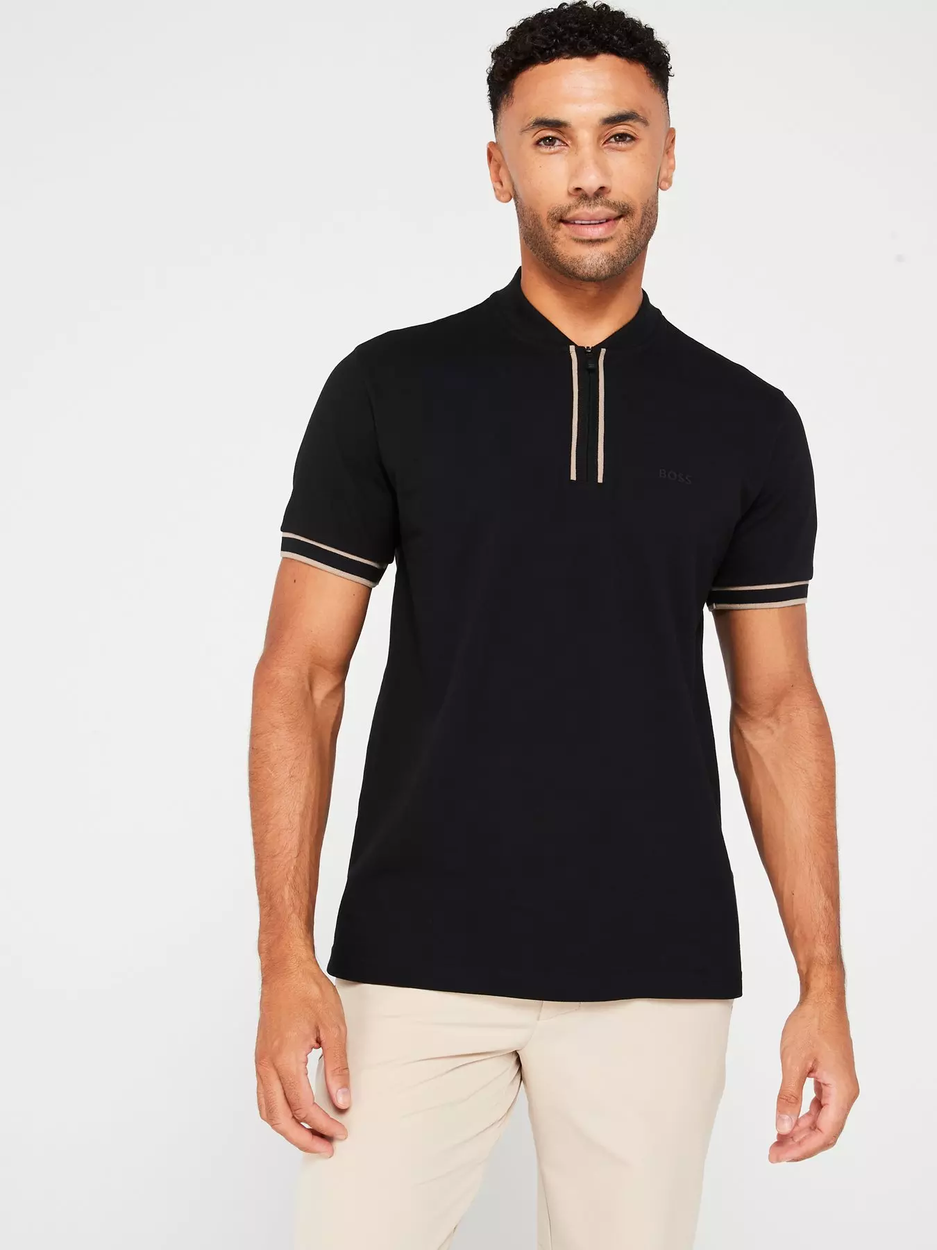 BOSSPariq Regular Fit Baseball Collar Zip Polo Shirt - Black