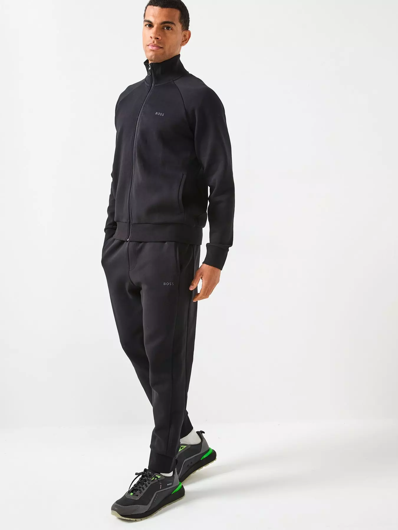 BOSSTracksuit Set Regular Fit Stripe Funnel Neck Tracksuit - Black