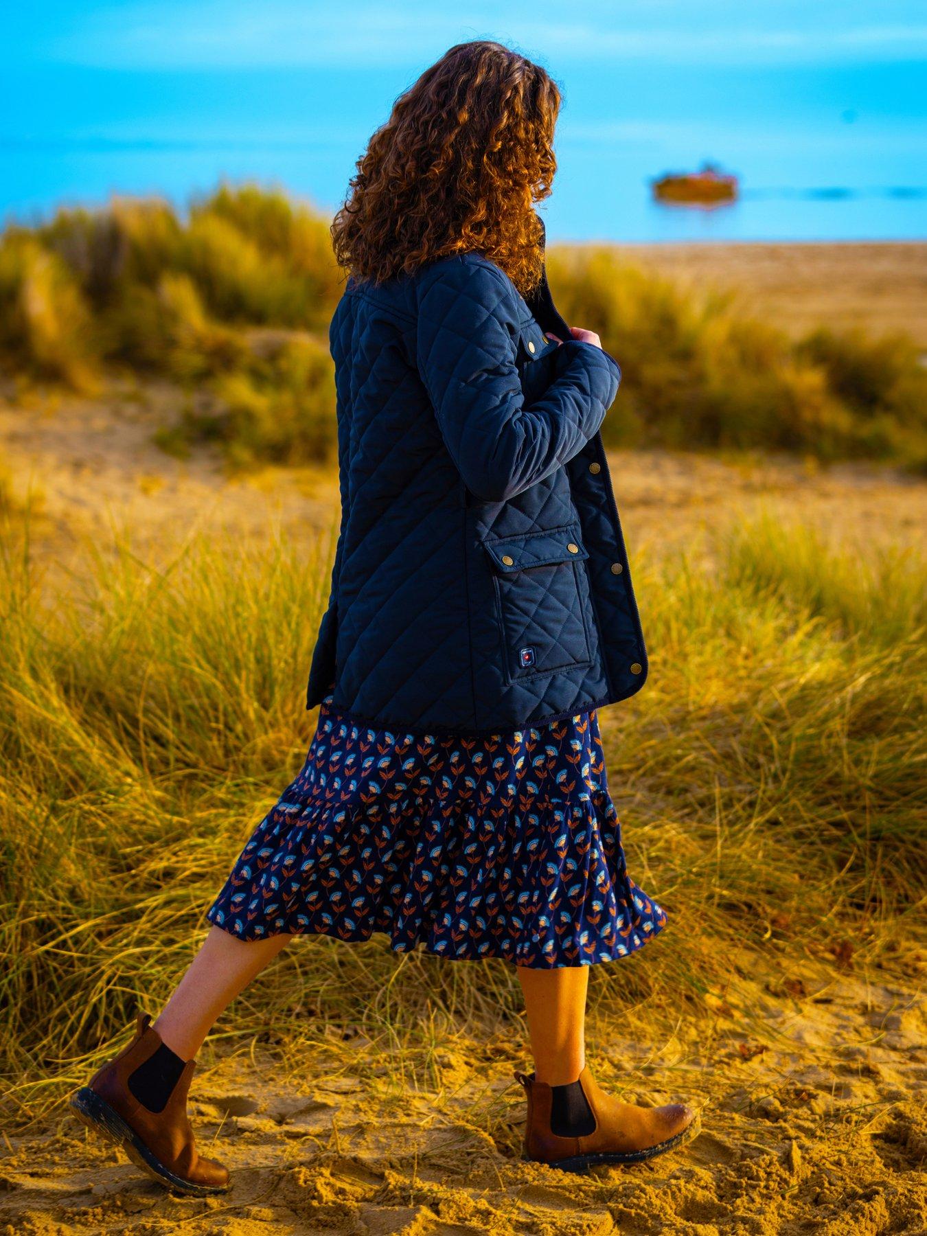 Our Flurry Jacket is the ultimate cosy quilted coat for comfort on cooler days. With a regular fit, it features a diamond quilted pattern, four deep pockets, a waist tie, and both zip and popper fastenings. Layer over a chunky knit and corduroy trousers.