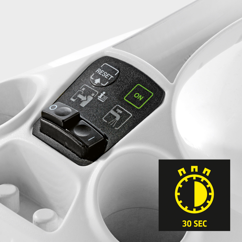 *When thoroughly cleaning with the Kärcher steam cleaner 99,99% of all common household bacteria will be killed on common smooth household hard surfaces, provided the cleaning speed of 30 cm/s at max. steam level and direct contact to the cleaning surface (test-germ: Enterococcus hirae).