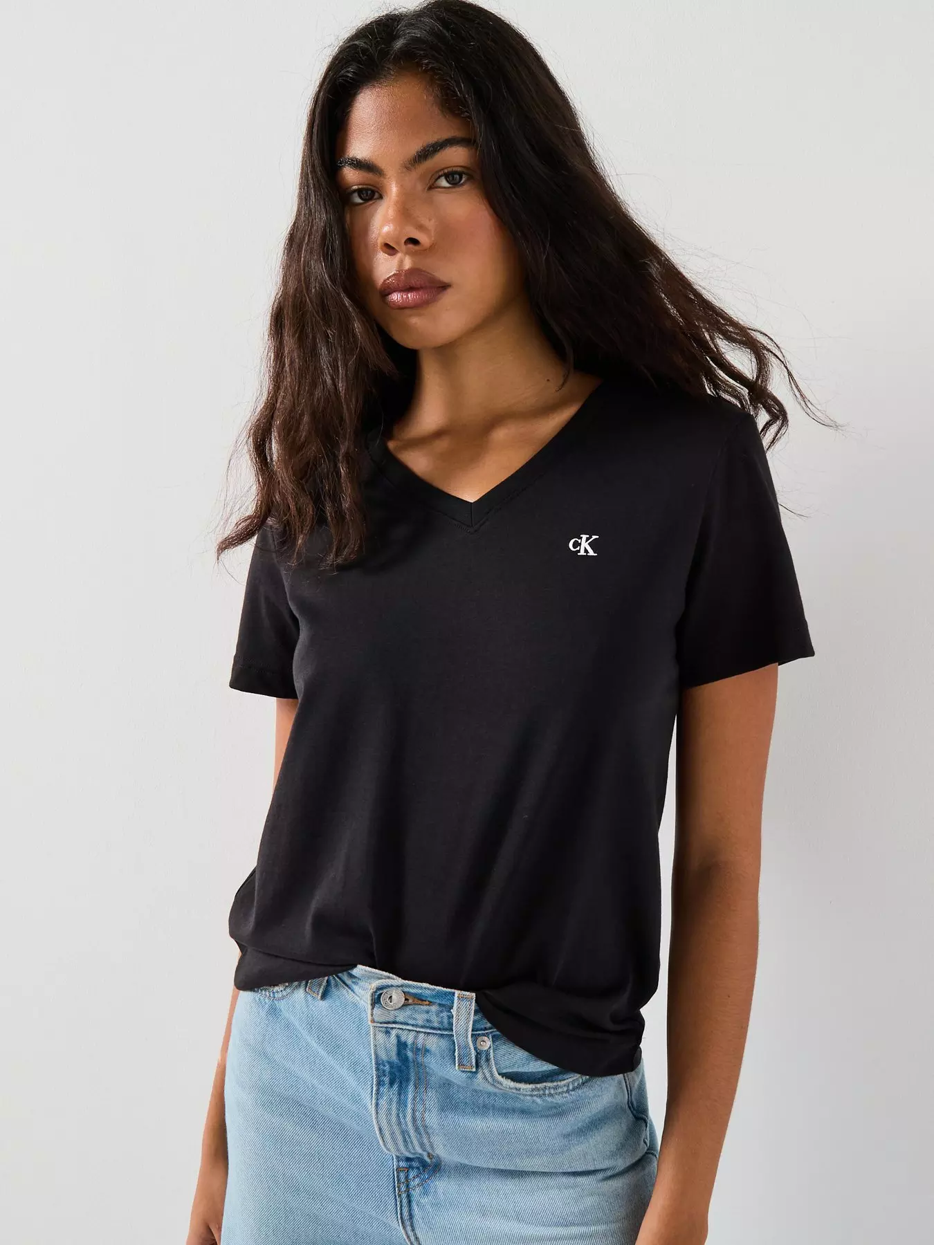 Calvin Klein JeansArchive Jersey V Neck T-Shirt - Black