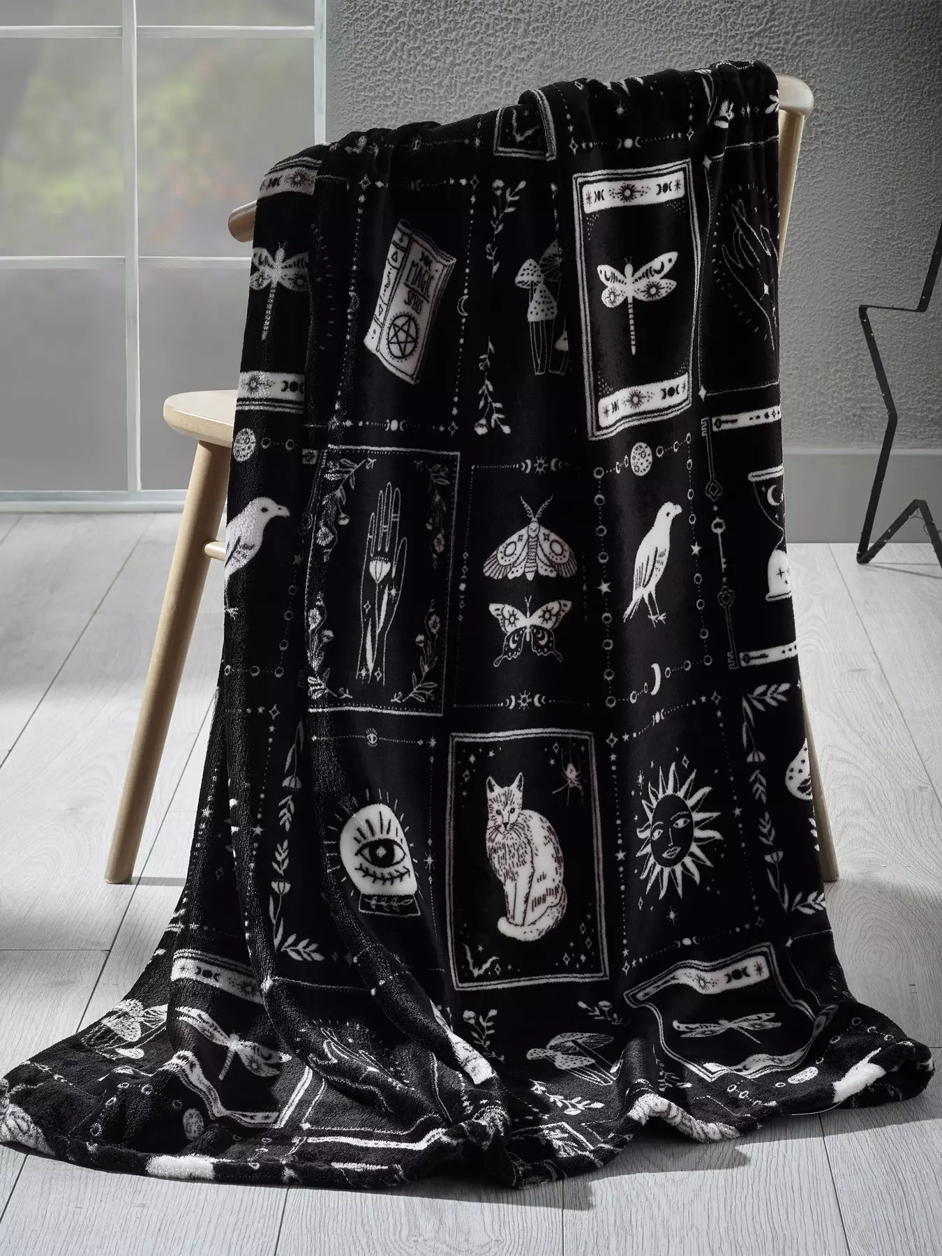 Catherine Lansfield is renowned for style and quality - designed and developed in Great Britain. Add a touch of mysticism to your space with the Enchanted Witchcraft throw. Featuring an intricate design of witchy iconography; from black cats and ravens to spell books, potions, and tarot inspired imagery; this throw is perfect for those who love all things magical. The monochrome palette enhances its mystical aesthetic, making it a stylish and statement worthy addition to your home. Crafted for cosy comfort in super soft polyester fleece, this throw is ideal for snuggling up during chilly nights while embracing the enchantment of the unknown.- Depth: 4 CM