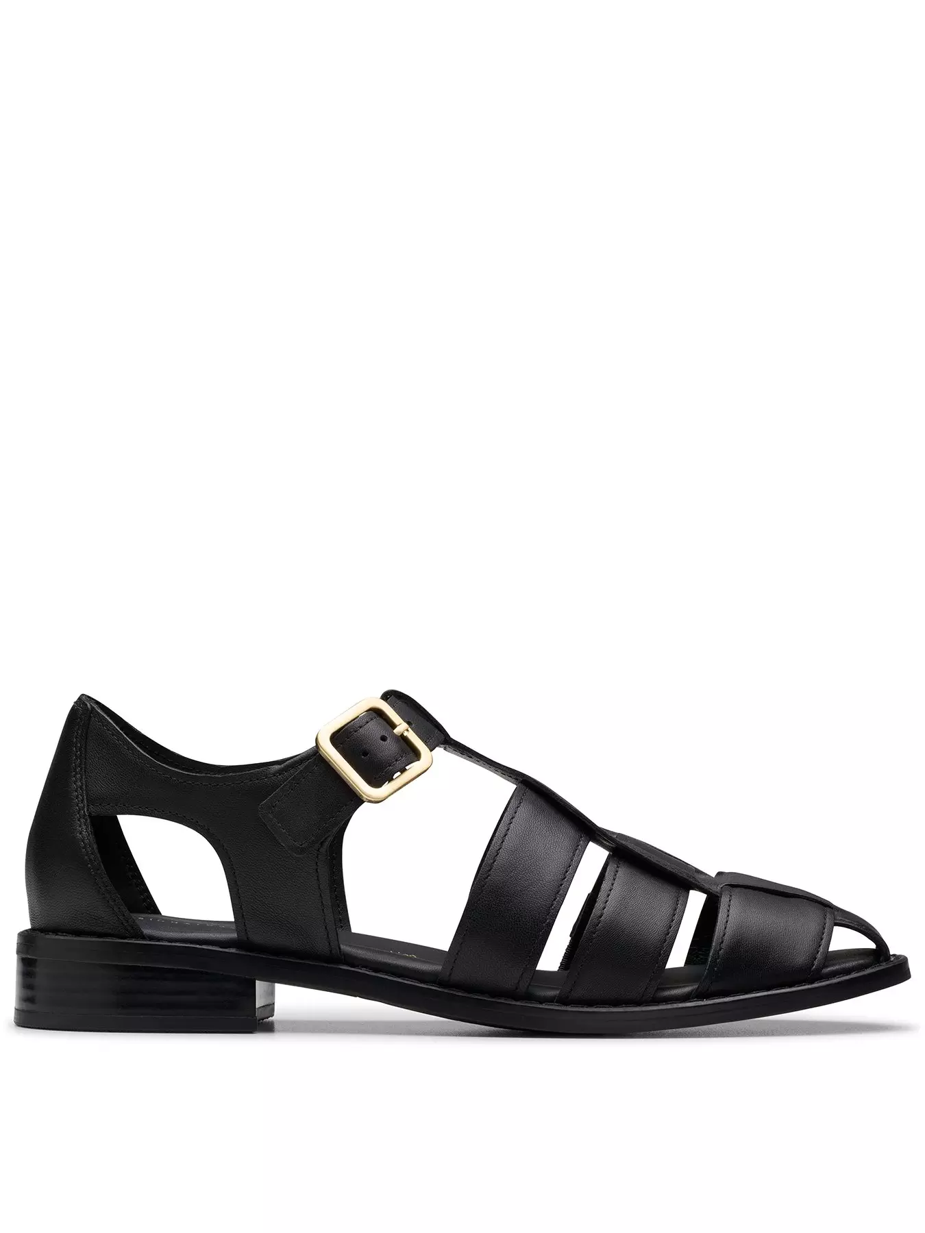 A refined fisherman flat, Hana Sun combines buttery black leathers with easy comfort for effortless everyday wear. Crafted with a flexible sole and a low heel for comfortable wear, it calls on subtle stitching to echo Clarks quality craftsmanship, while an ankle strap with hidden elastic fits just like your old favourites.- Premium black leather upper