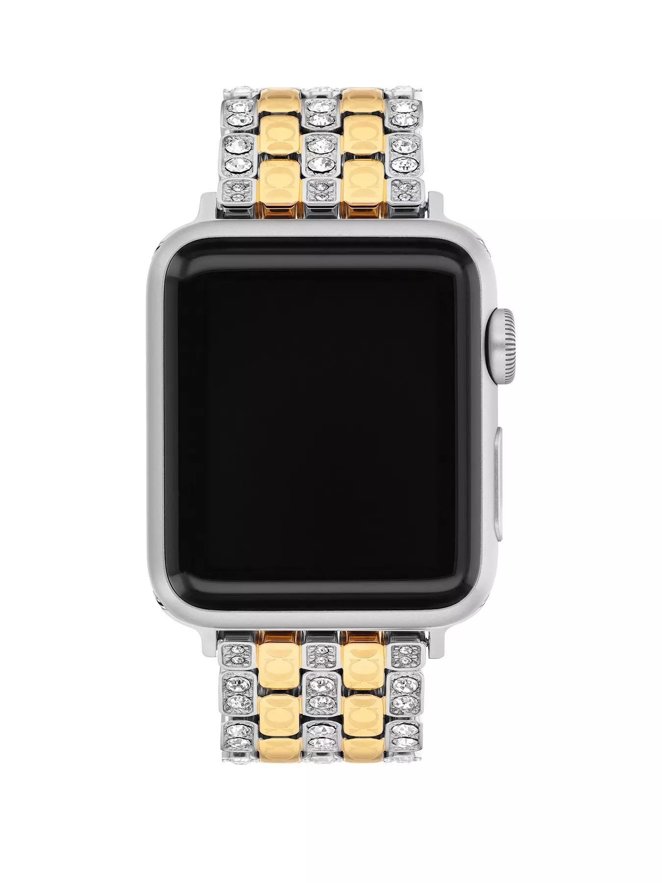 Made exclusively for use with the 38mm, 40mm and 41mm Apple Watch. Featuring a stainless and light gold IP linked bracelet with signature c etching and crystals.- Metal Type: Stainless Steel