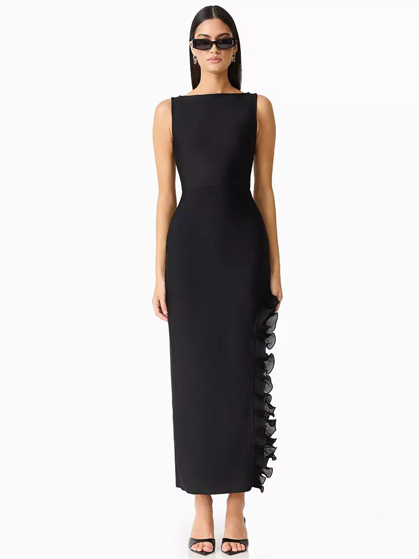 - Side split with ruffle detail
