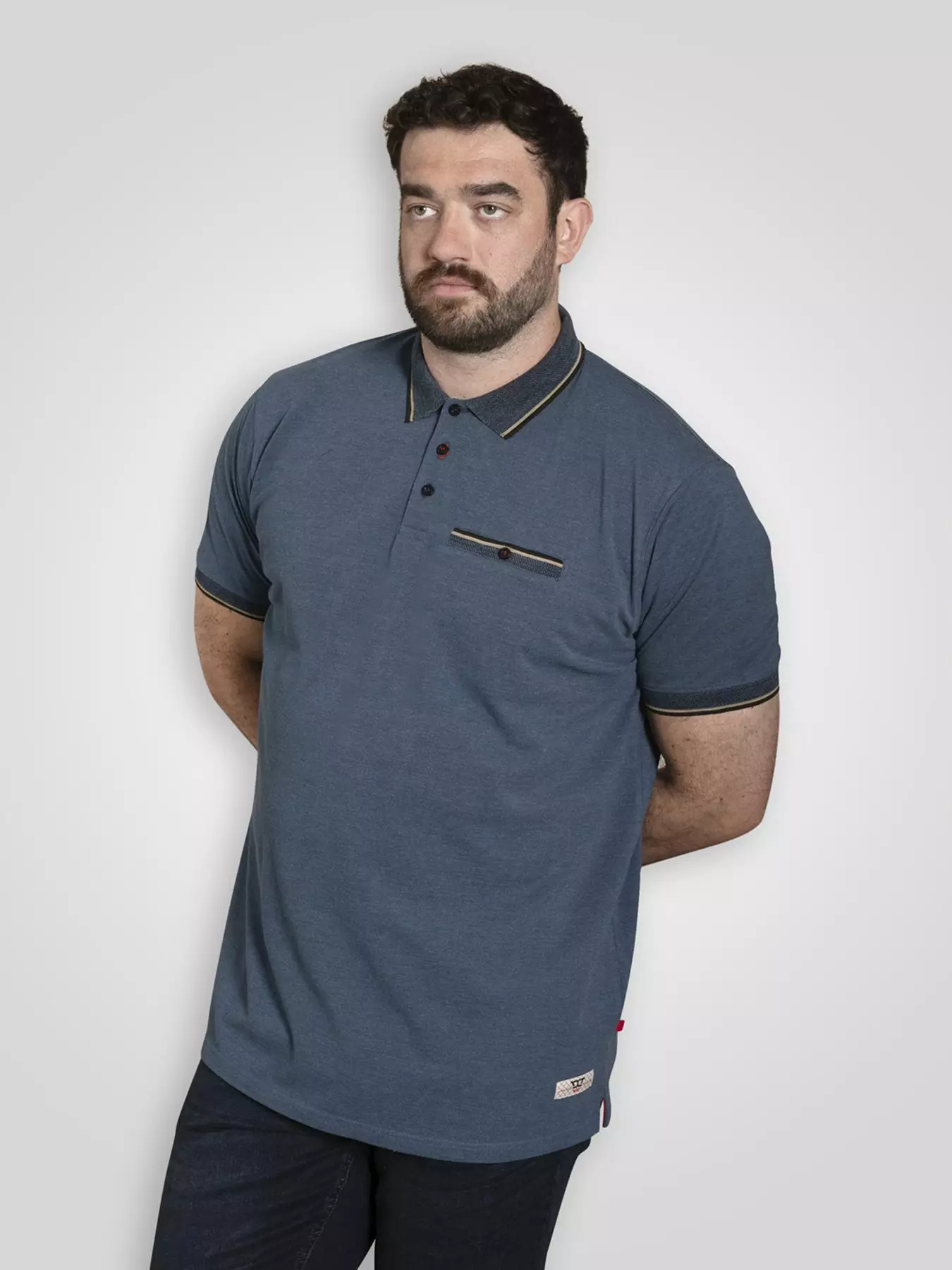 D555Pique Polo Shirt With Jacquard Collar And Cuffs With Chest Pocket - Blue