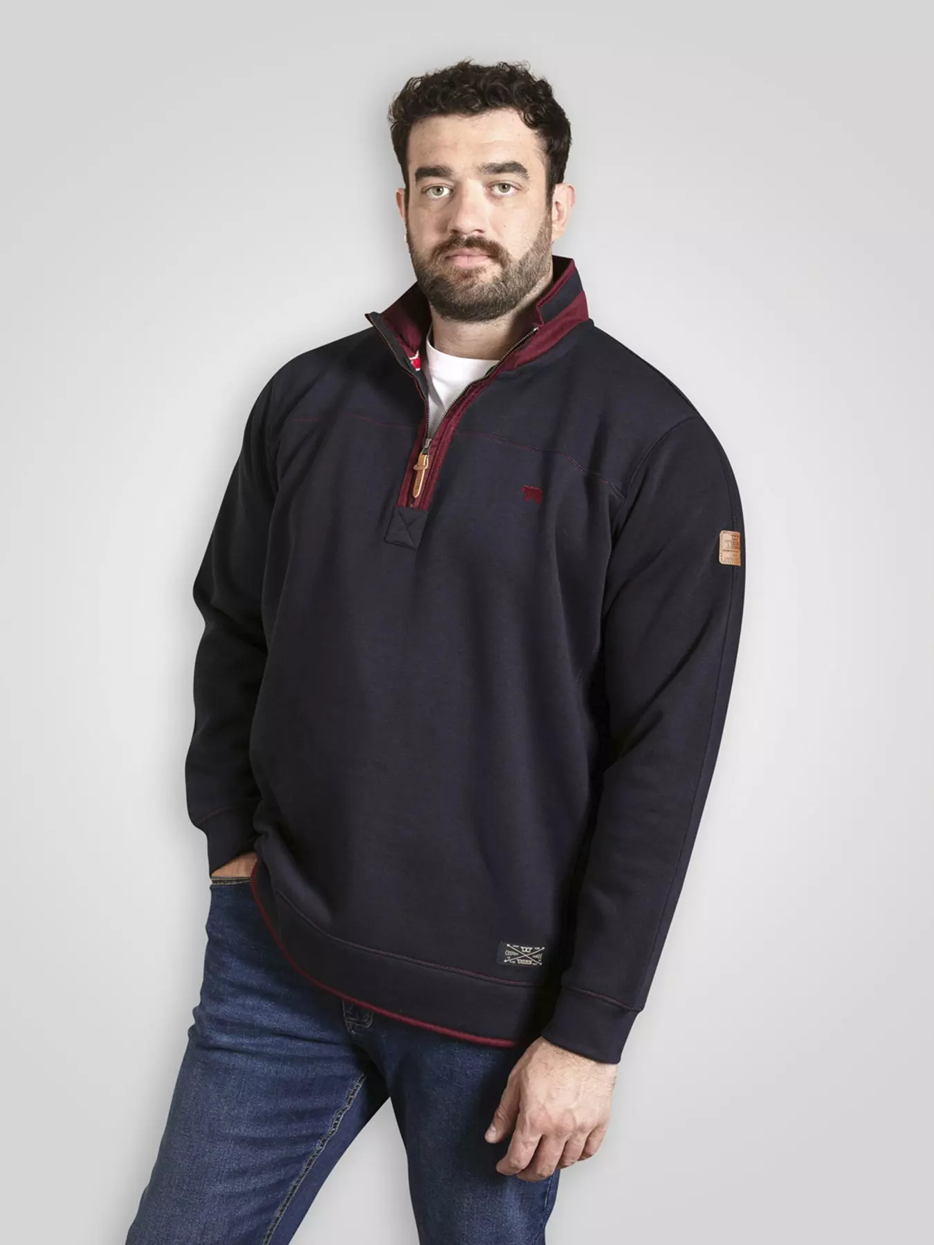 D555Quarter Zip Fleece Sweatshirt With Chest Embroidery - Navy