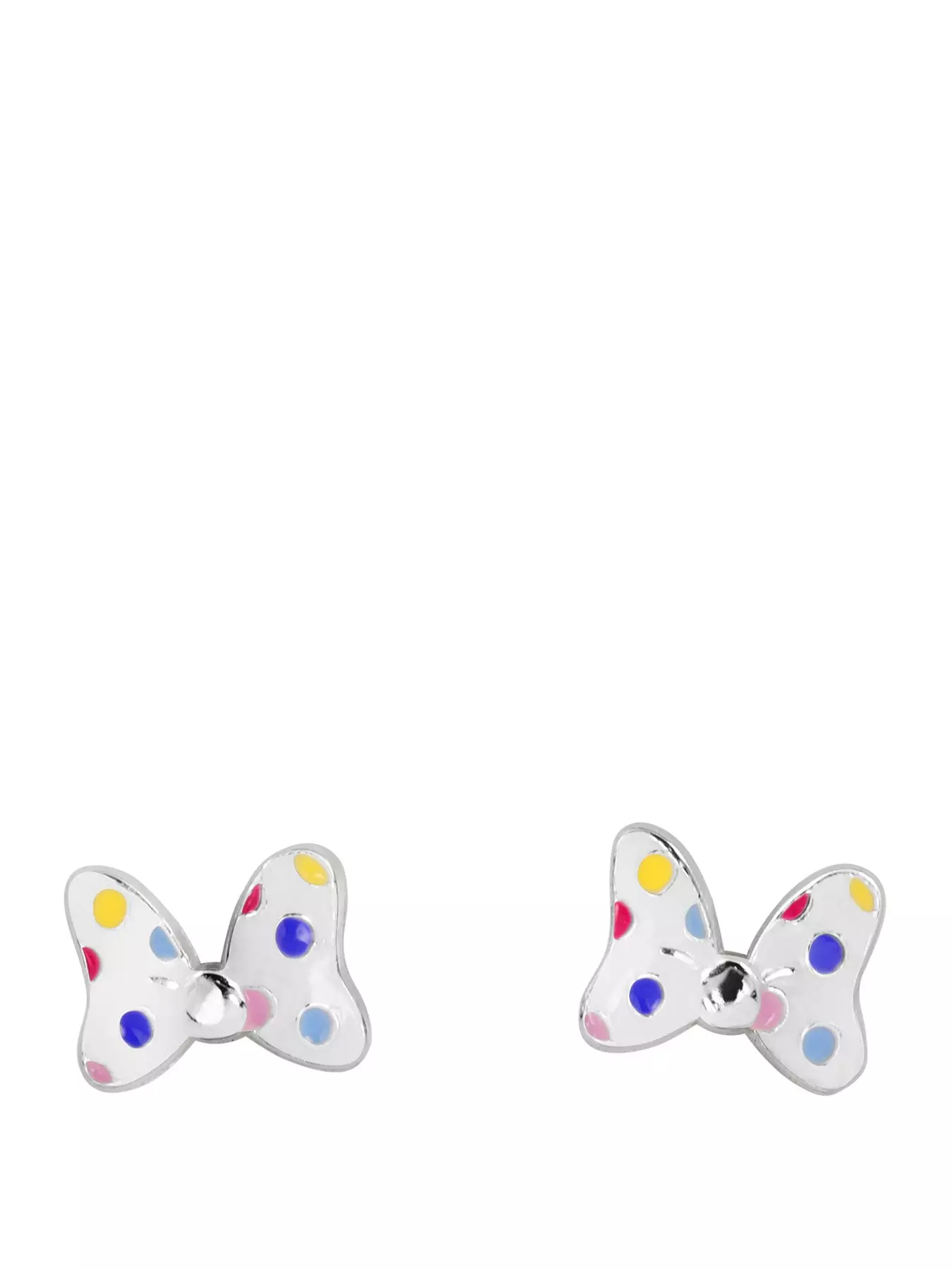 These official Disney Minnie Mouse children's sized 925 sterling silver bow earrings are the perfect gift for any Minnie Fan!Featuring a pair of Minnie multicolour dot bow stud earrings with a silver outline.