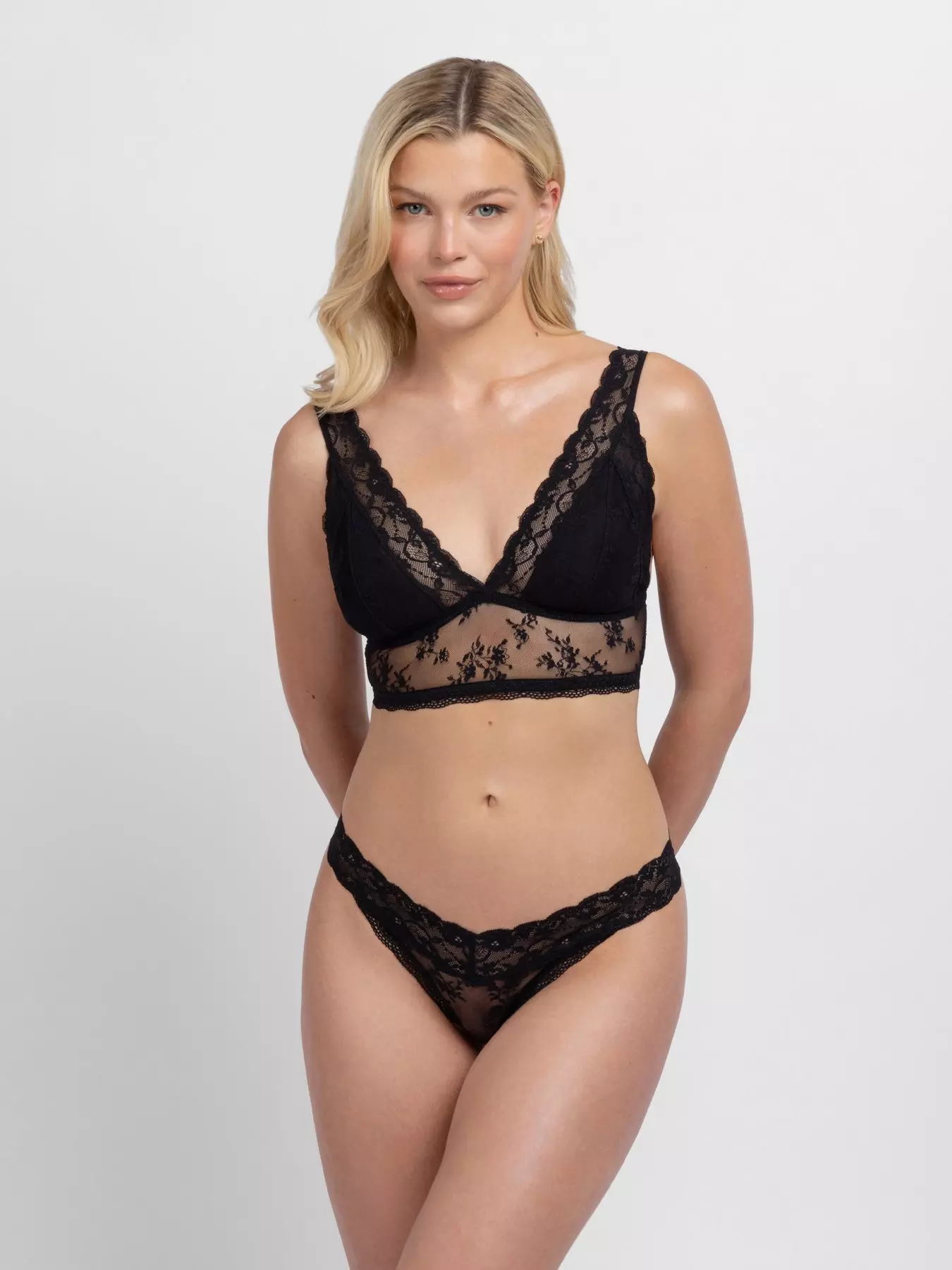 Make it a set with our ultra-flattering Essential Lace thong briefs, a matching knicker to our Essential Lace bralettes. Thanks to her high-leg silhouette and delicate details, we call her ‘everyday sexy' - with her comfy curves and romantic floral lacewo- Material Content: 90% Polyamide 10% Elastane / 90% Polyamide 10% Elastane / 90% Polyamide 10% Elastane