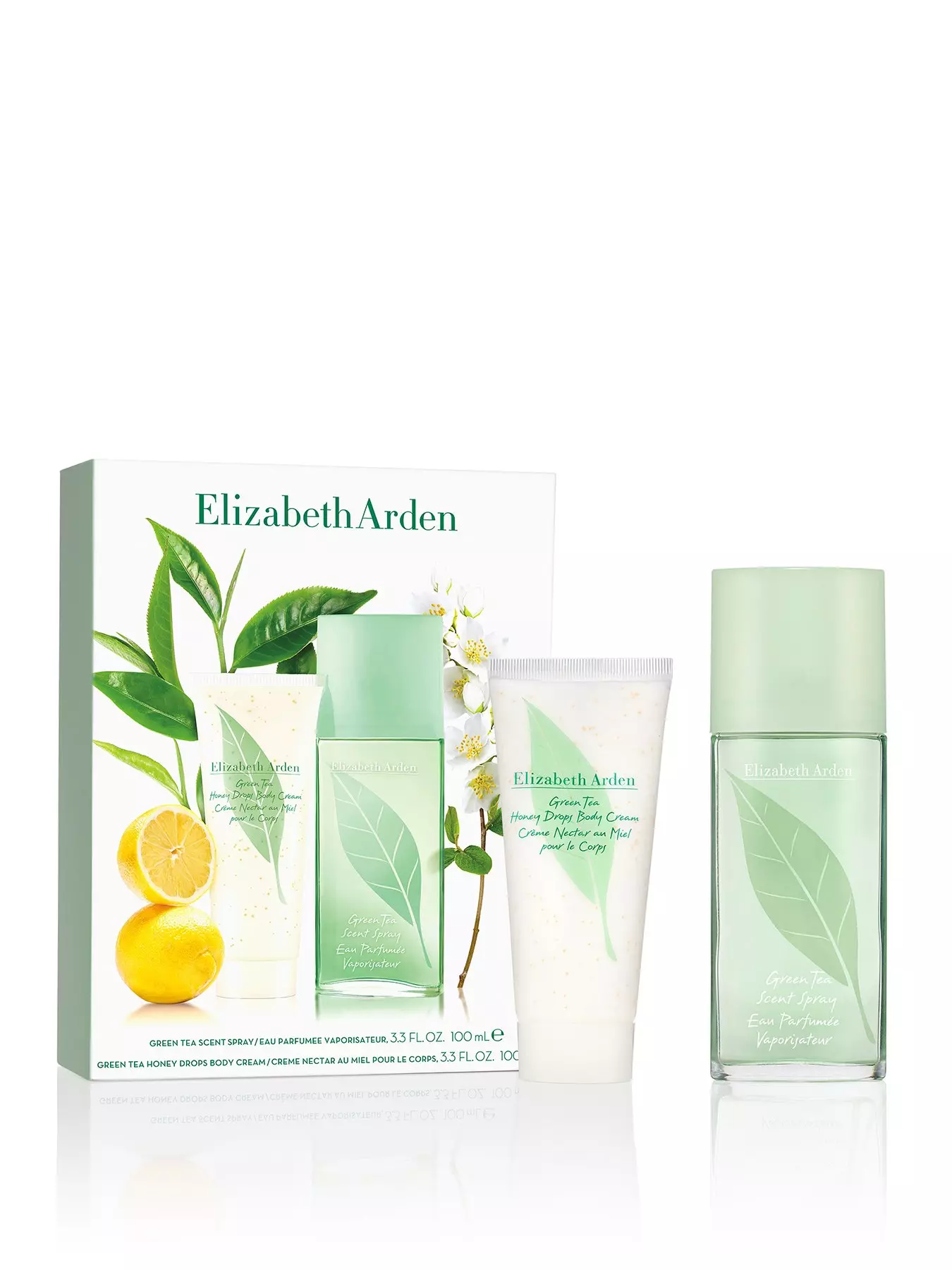 From Elizabeth Arden, the creator of several iconic and bestselling fragrance collections, comes this two-piece fragrance set, perfect for gifting. Featuring Green Tea Scent Spray and Honey Drops Body Cream, the duo promises to energize the body and excite the senses, with a harmony of aromatics. The bouquet is infused with sparkling greens, entwined with mint, jasmine, lemon and oakmoss. Apply cream every day, and as needed, to the whole body, massaging in upward circular motions. Follow with a misting of the scent spray to enhance and prolong the fragrance experience.Use the right and left arrows to scroll through the image carouselPage 1 of 322