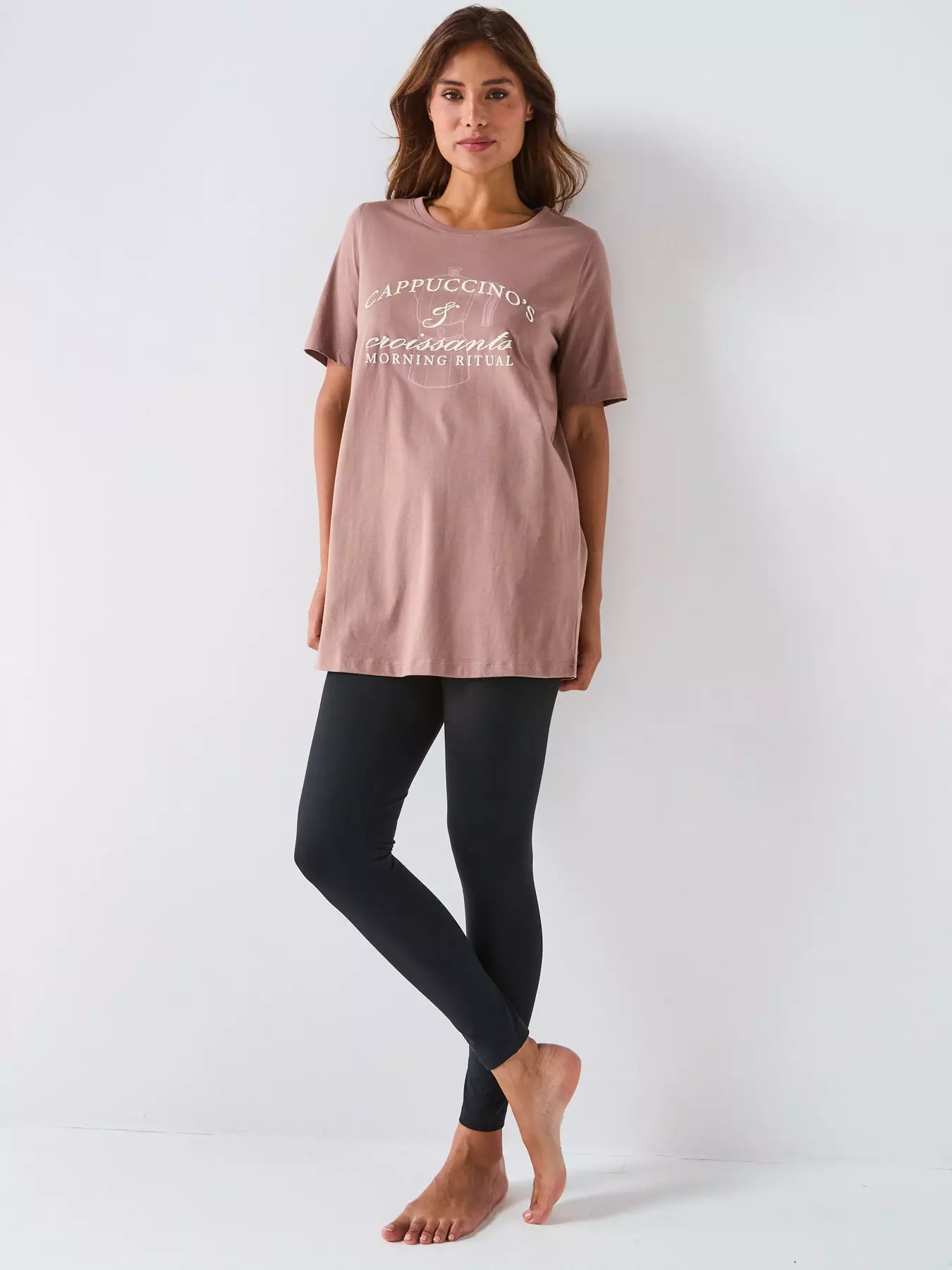 EverydaySlogan Longline T-Shirt With Leggings Pj Set - Brown