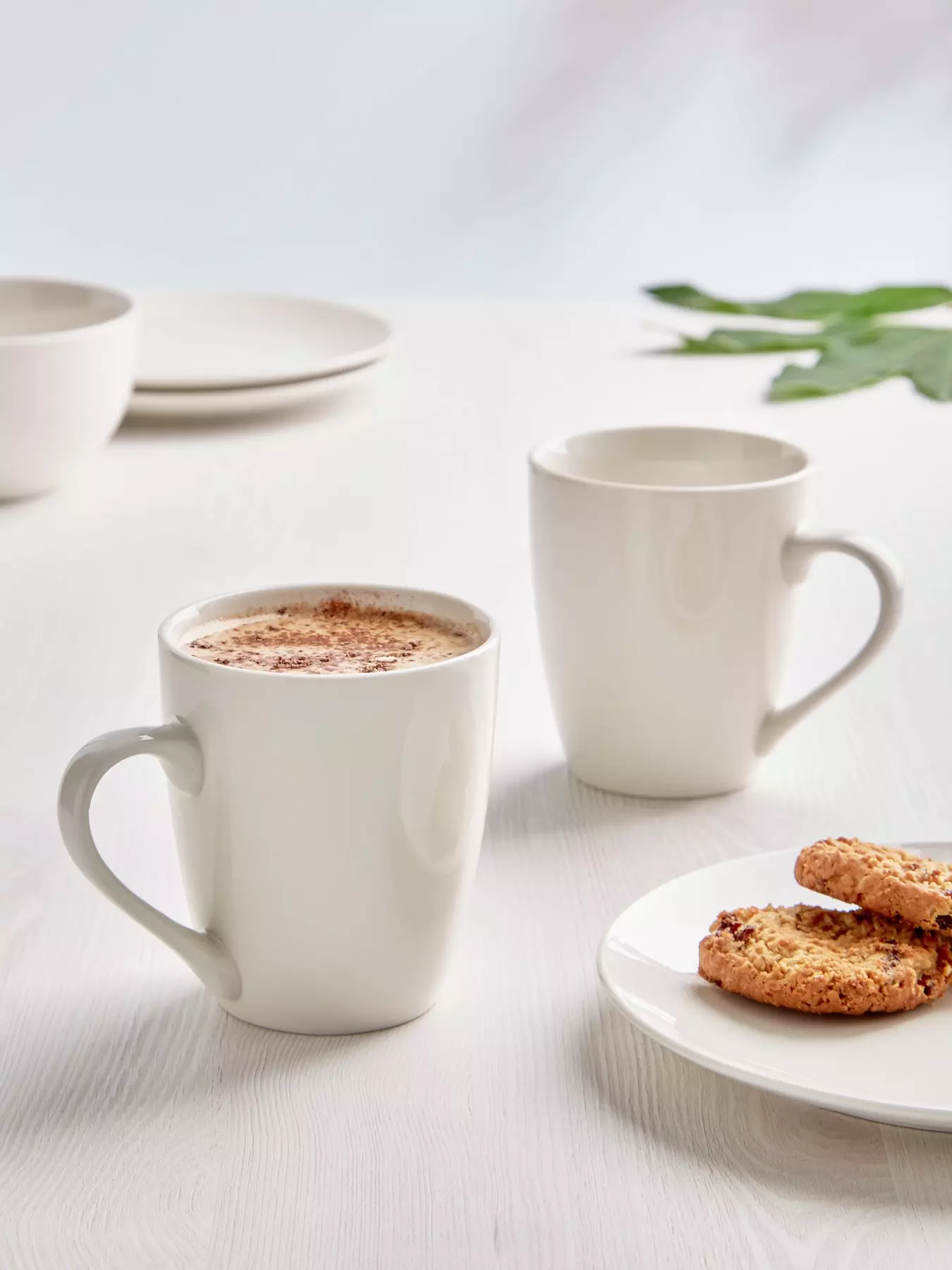 A part of our Everyday collection, the Vienne set of 4 mugs brings timeless sophistication to your serving essentials.In a pristine white hue, each of the mugs are made from porcelain and finished with a sparkling glaze. The minimalist visuals and elegantly curved handles make them ideal for everything from that first coffee of the day to a soothing late night herbal tea.