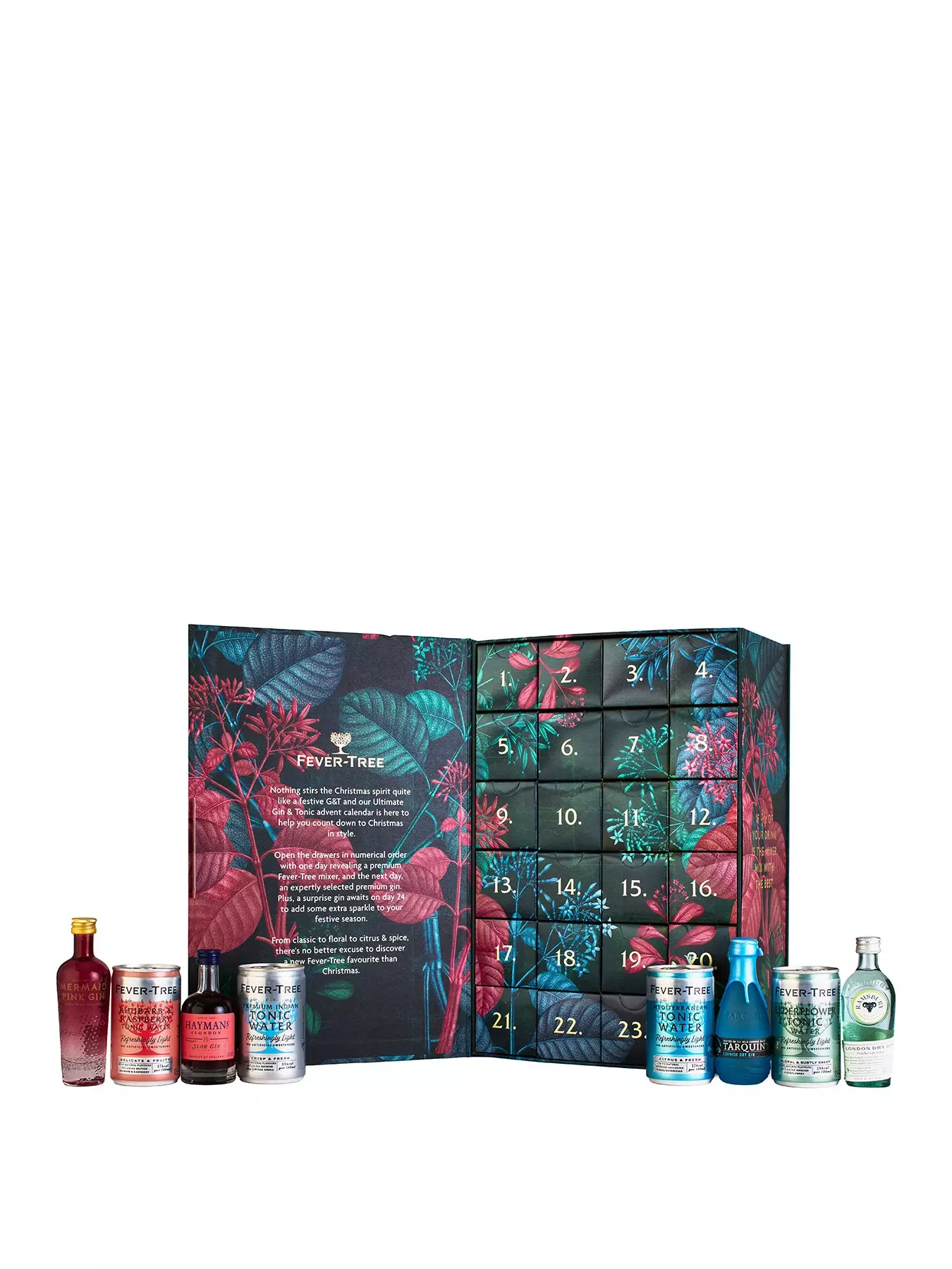 The Ultimate Gin & Tonic Advent Calendar. Nothing stirs the Christmas spirit quite like a festive G&T and our Ultimate Gin & Tonic Advent Calendar is here to help you count down to Christmas in style. Open the drawers in numerical order with one day revealing a premium Fever-Tree mixer, and the next day, an expertly selected premium gin. Plus, a surprise gin awaits on Day 24 to add some extra sparkle to your festive season. From classic to floral to citrus & spice, there's no better excuse to discover a new Fever-Tree favourite than Christmas.- Depth: 140 MM
