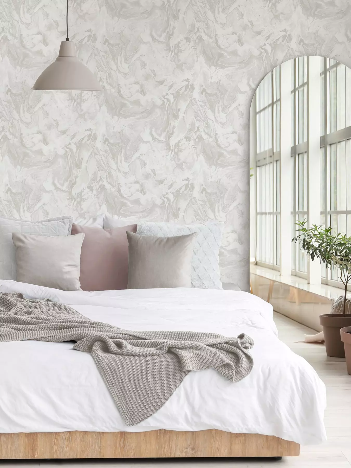 Elevate your space with the opulent elegance of this luxe marble wallpaper, where timeless sophistication meets modern glamour. Featuring a rich, natural marble pattern in soft, swirling tones each detail is enhanced with subtle metallic highlights. The reflective accents catch the light beautifully, adding depth and a touch of shimmer for a refined yet striking look.- Depth: .6 CM