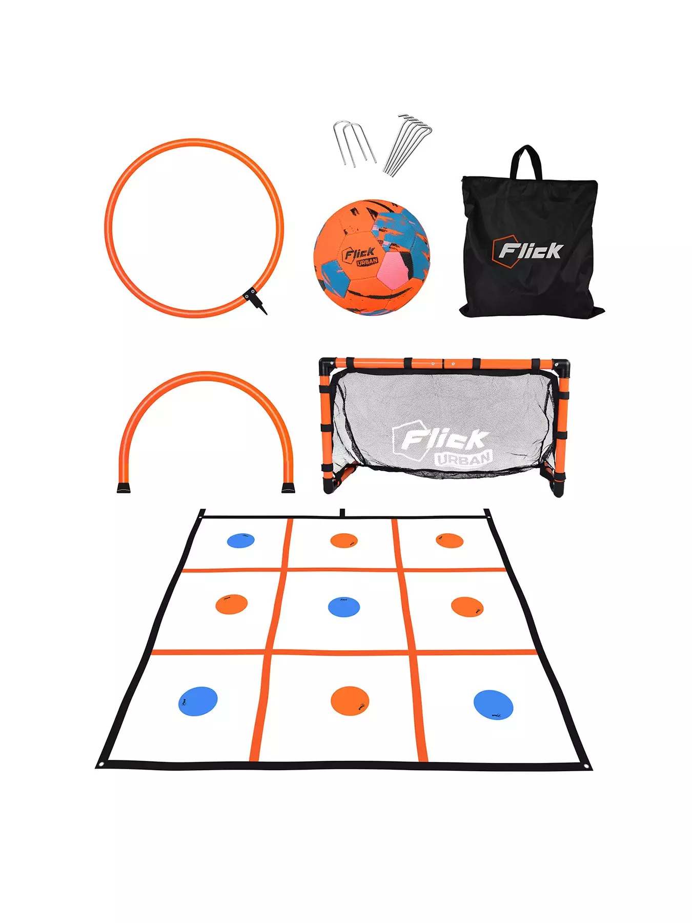 Tekkers Pack is the ultimate pack for practice and endless fun. Use the 3 x 3 square grid to start playing Tic-Tac Tekkers, our take on the popular game but this time using a football and your skill. Challenge your friends, family or team-mates and see who can become the king or queen of the grid. When you're finished using your Tekkers Grid on the ground, simply hang it from any goal and you have an instant target sheet. Tekkers Pack also comes with a mini goal, specially designed high-grip Tekkers Ball and 2 target hoops to help improve your accuracy further. The Urban range is a collection of our most unique training products. They are all specially designed for use in the garden or on the training pitch and have scientific validation running through their DNA. All Urban products allow users to improve their skills whilst having the most fun possible. Football Flick is the world's no.1 training range, used by tens of thousands of players in their garden or training environment. We are the only football range to be scientifically validated, ensuring you are guaranteed to improve your skills.- Depth: 63 CM