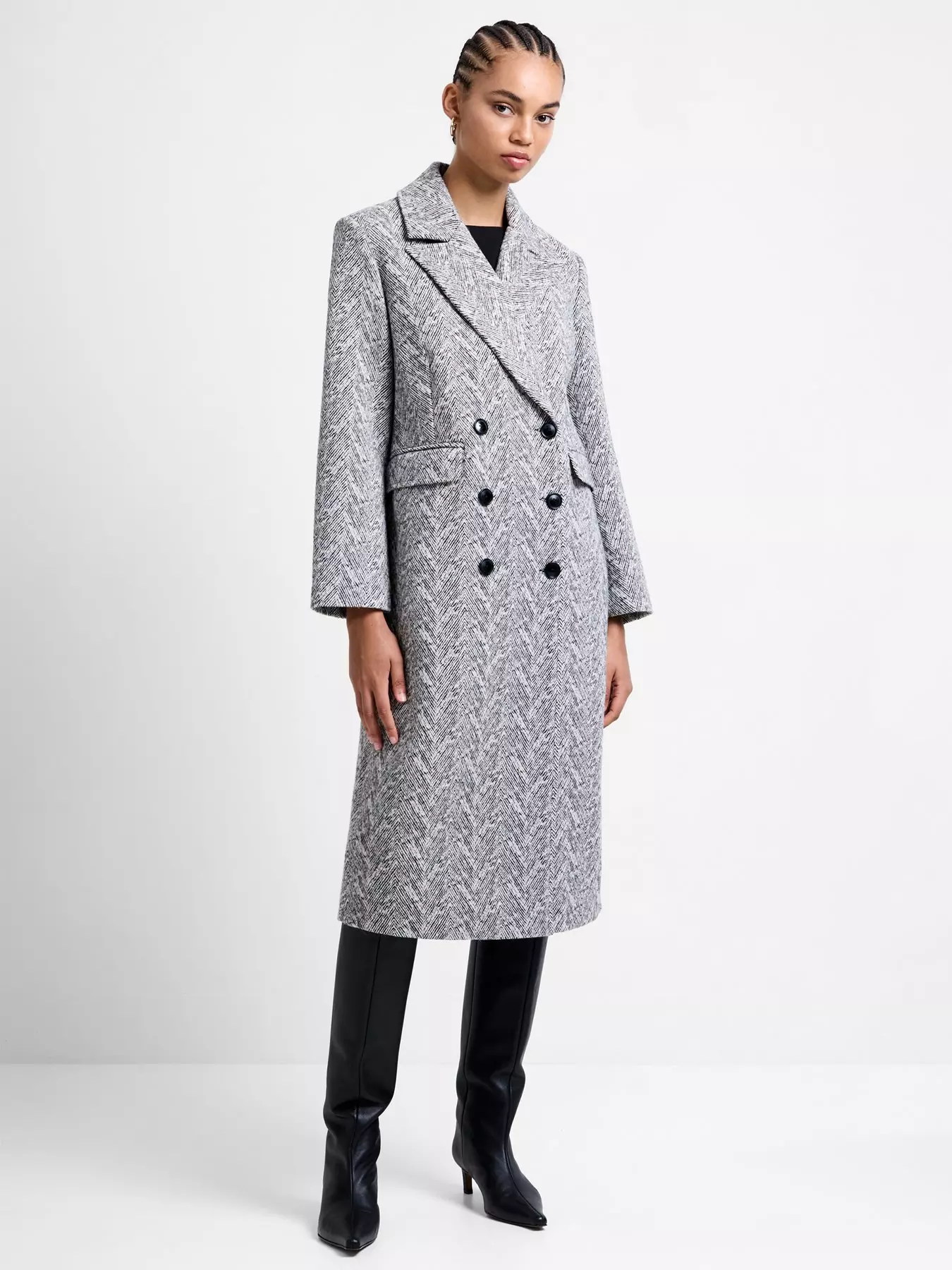 French ConnectionDouble Breasted Structured Herringbone Coat