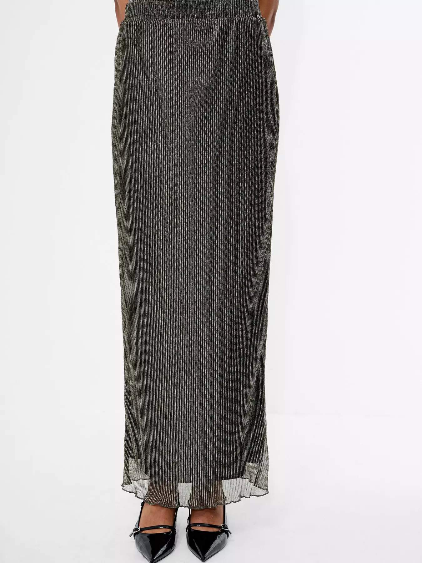 - Lurex Plisse Elasticated Waist Scalloped Hem Midi Skirt by French Connection