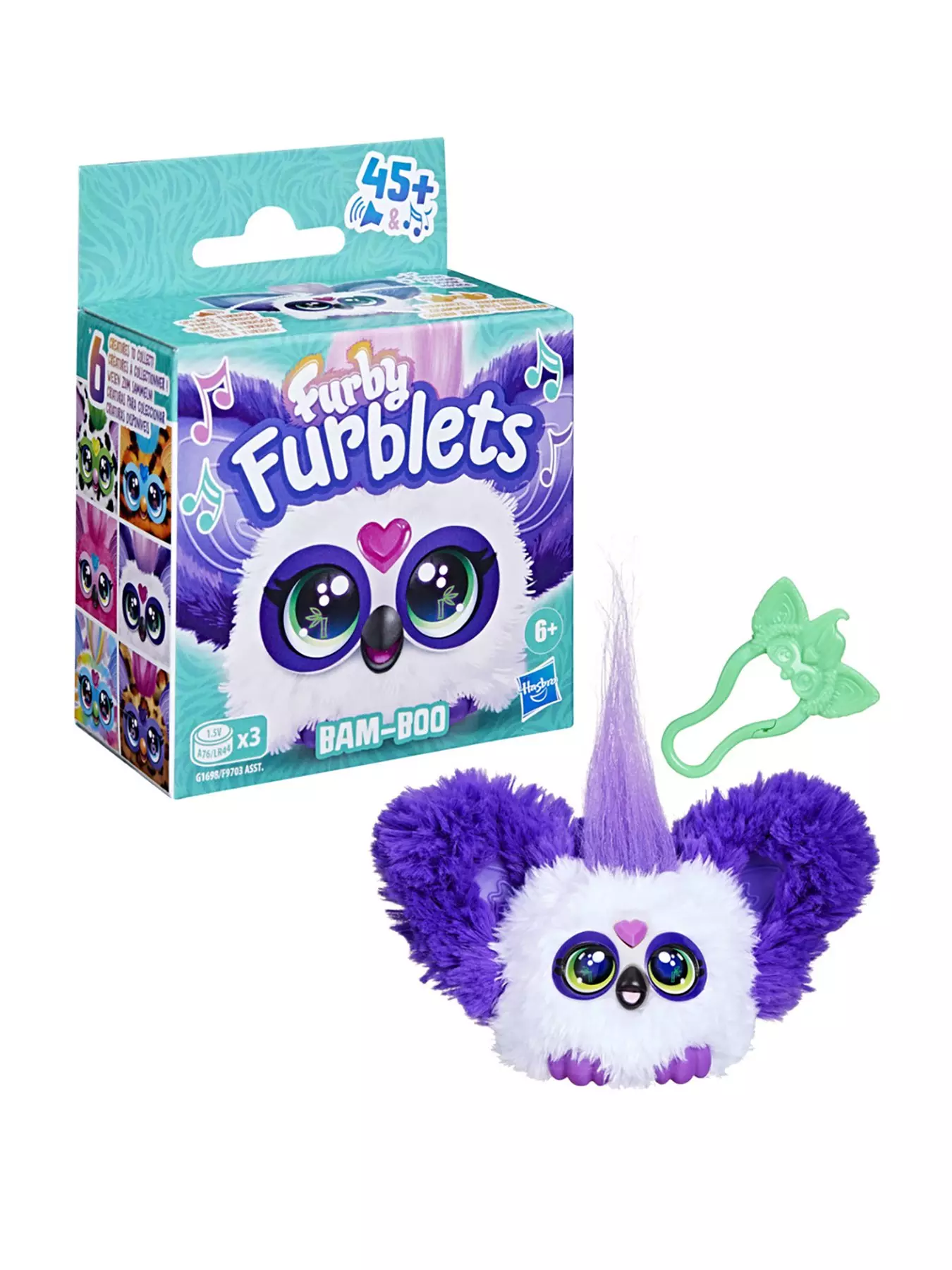 The Furblets are going wild! Bam-Boo looks like a tiny panda with a big personality. Explore a variety of over 45 fun sound effects and music with this mini Furby electronic toy for girls and boys aged 6 years and up. It's a talking toy that only speaks the unique language called Furbish (they don't speak human languages). Clip Bam-Boo to a backpack or other travel bag with the keychain clip to bring the Furblets party anywhere you go. From stuffed animal toys, to Easter basket toys, to stocking fillers, this little friend (or 'noo-lah' in Furbish) can't wait to meet their bestie! Furby and all related properties are trademarks of Hasbro.- Accessory List: Includes Furblets figure and clip.