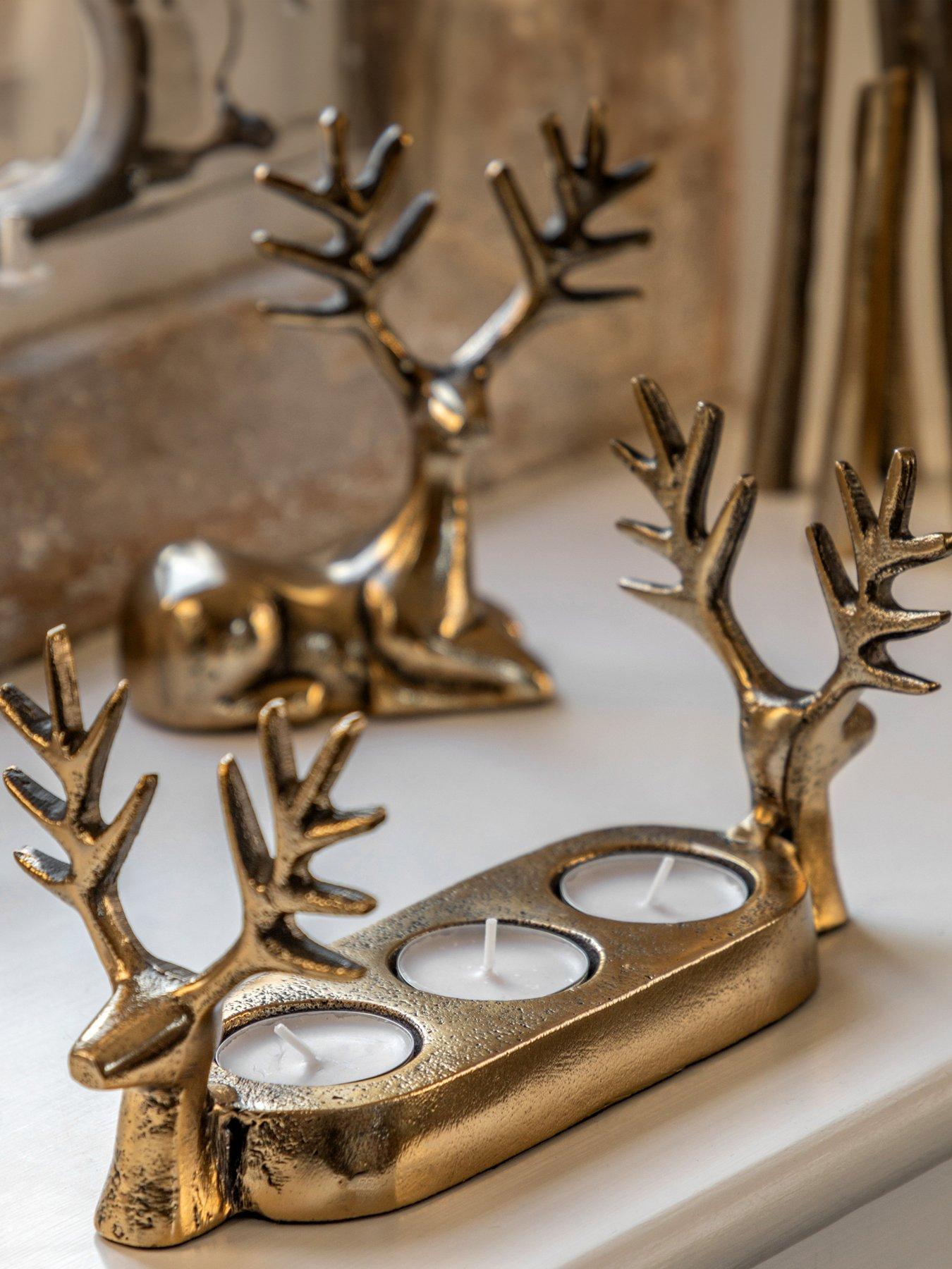 Gallery Direct Reindeer 3 Tea Light Holder Antique GoldTBC