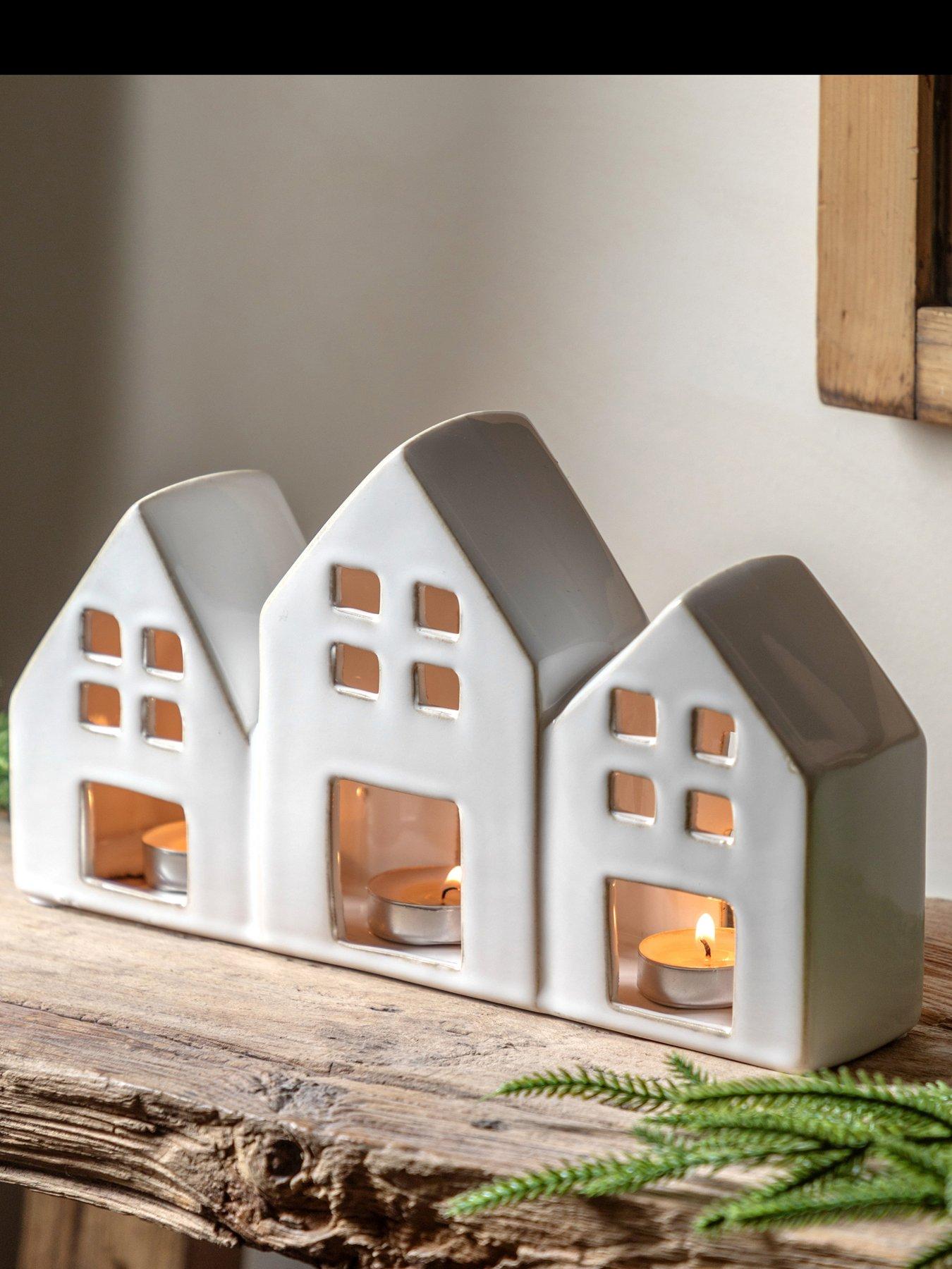Gallery Direct Set Of White Ceramic Decorative House Tealight Holder