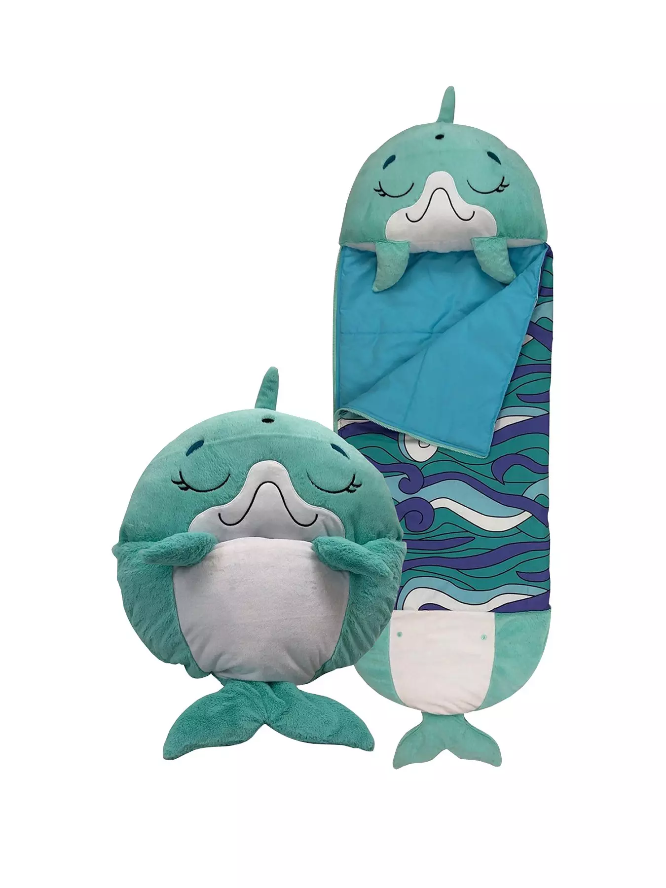 Happy Nappers are the fun, fuzzy friend that's not just the perfect play pillow - it pulls open and turns into a comfy sleeping bag surprise!This cool disco dolphin can provide hours of cuddle fun during the day, before transforming into a cosy sleeping bag at night!