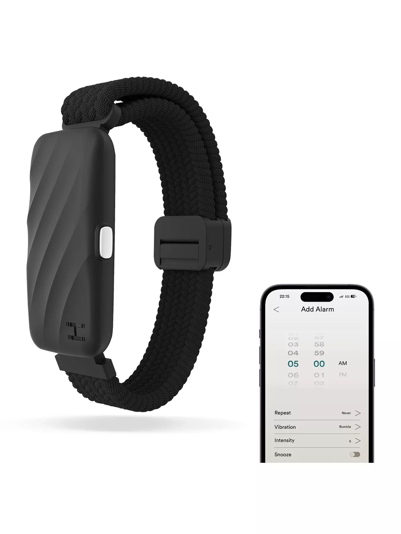 - Customisable alarm settings with 9 vibration modes + snooze