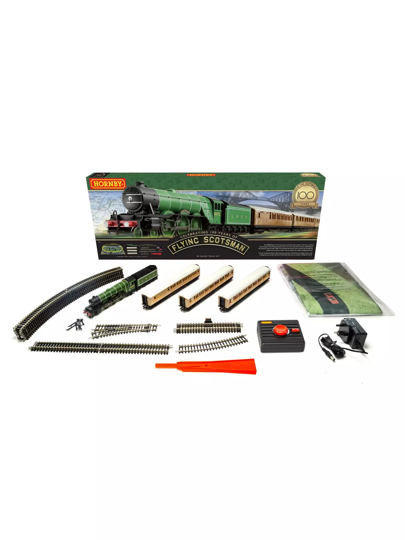 The most famous locomotive and train in the world features in this superb Hornby train set. The striking apple green liveried class A1 'Flying Scotsman' helps to recreate those wonderful days of train travel in the 1930s when the two great railway rivals, LNER and the LMS vied for the lucrative passenger traffic between London and Scotland. The track circuit in this set can be extended to fully complete the included MidiMat layout using additional track and accessory packs thus creating an exciting and fully functioning model railway.- Depth: 118 CM