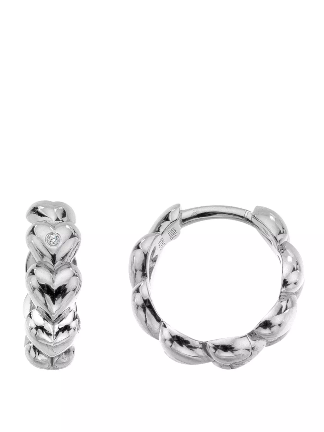 Hearts, hearts and more hearts! Our Serenity jewels are here to stand out and take centre stage. Crafted in sterling silver and hand-set with a real diamond, these earrings measures 10mm wide.- Depth: 2 MM