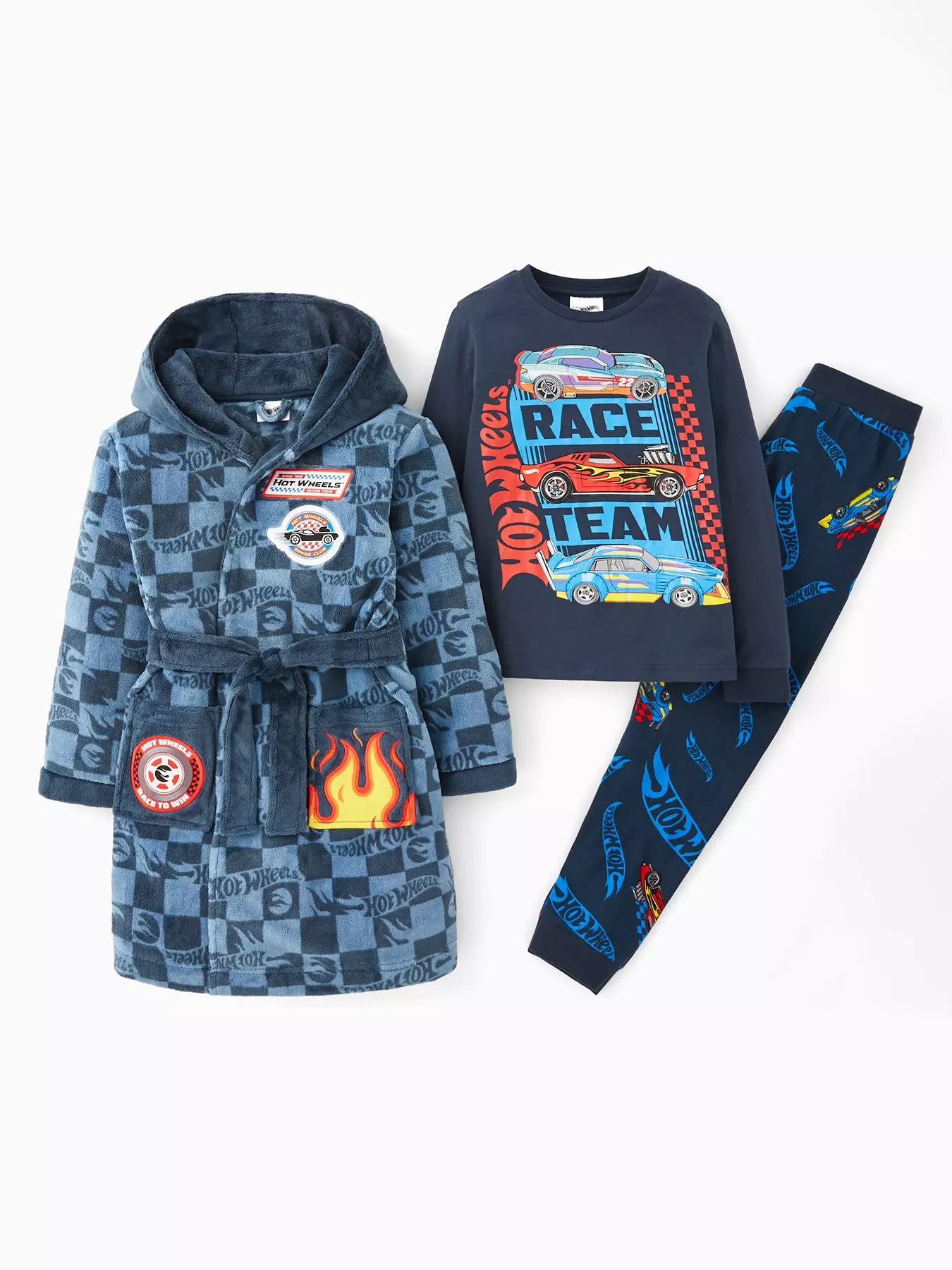 Hot Wheels 3 Piece Long Sleeve Pyjama And Gown Set