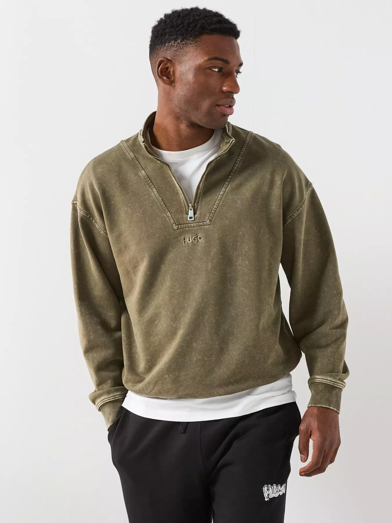 HUGONebuzip Loose Fit 1/4 Zip Sweat - Khaki