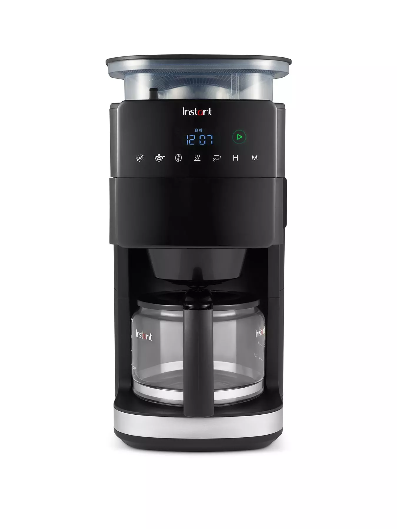 Brew bean-to-cup coffee for everyone with ease with the Instant Grind and Brew coffee maker. With 24-hour programmable timer, you can ensure your coffee is brewed and ready to drink as soon as you wake up, while the rest stays warm for those later risers. Or for busy weekday mornings, brew a cup ready for first thing, and another to take on the go. Choose your preferred coffee beans, then decide from 5 grind settings and 3 brew strengths to achieve your perfect cup every time. This smart coffee machine automatically grinds the precise amount of beans according to your preferences, ensuring minimal wastage. Reusable gold tone filter allows more coffee oils to be released, to give you the richest tasting coffee, bringing the café experience to your home!