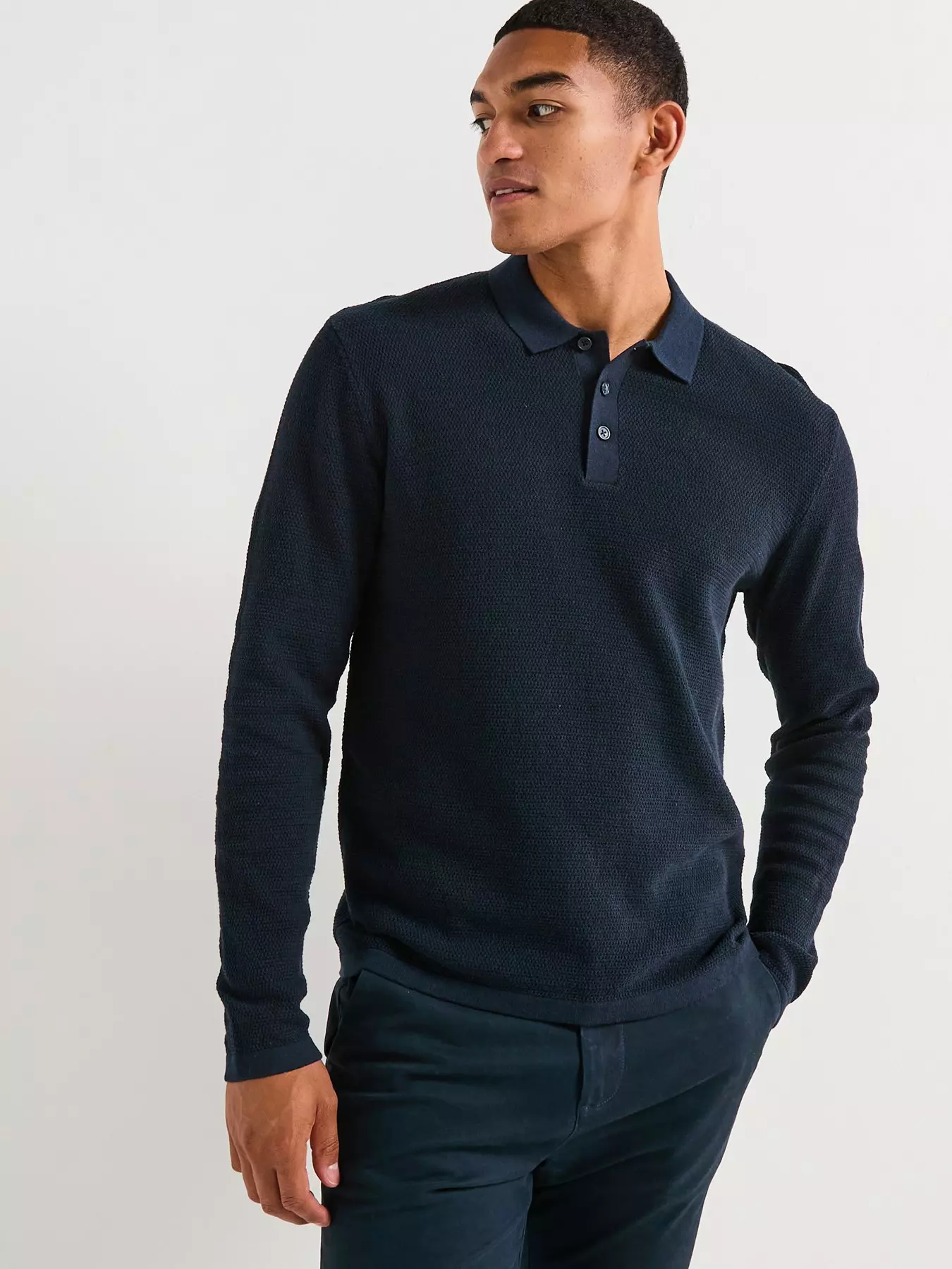 Jack & JonesGeorge Textured Knitted Polo Top - Navy
