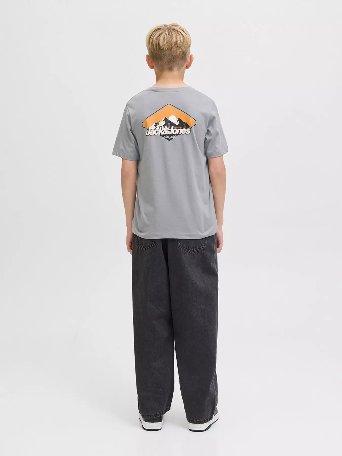 Jack & Jones JuniorBoys Mountain Back Print Short Sleeve T-Shirt - Grey