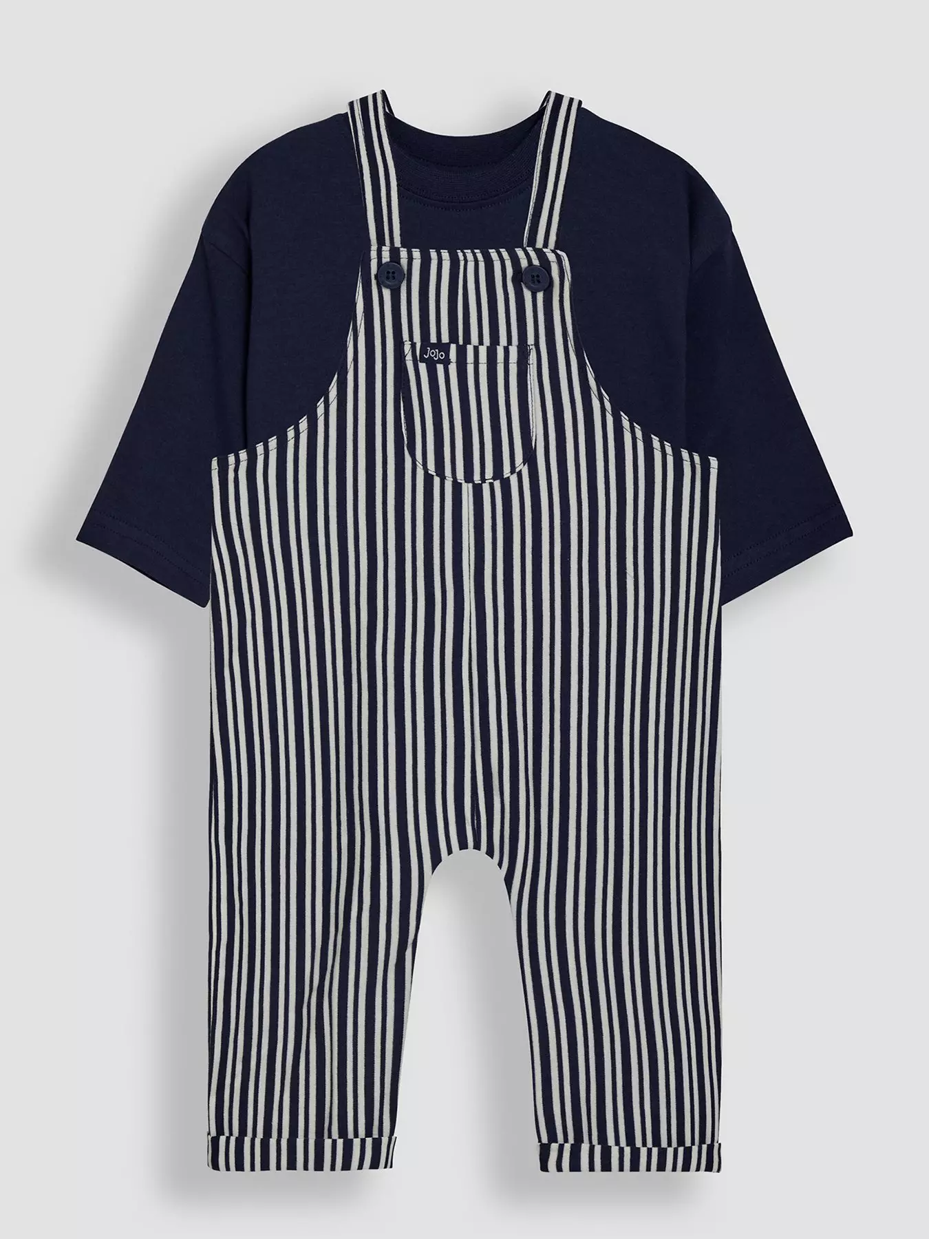 - Baby Boys 2-Piece Stripe Dungarees & Top Set by JoJo Maman Bebe