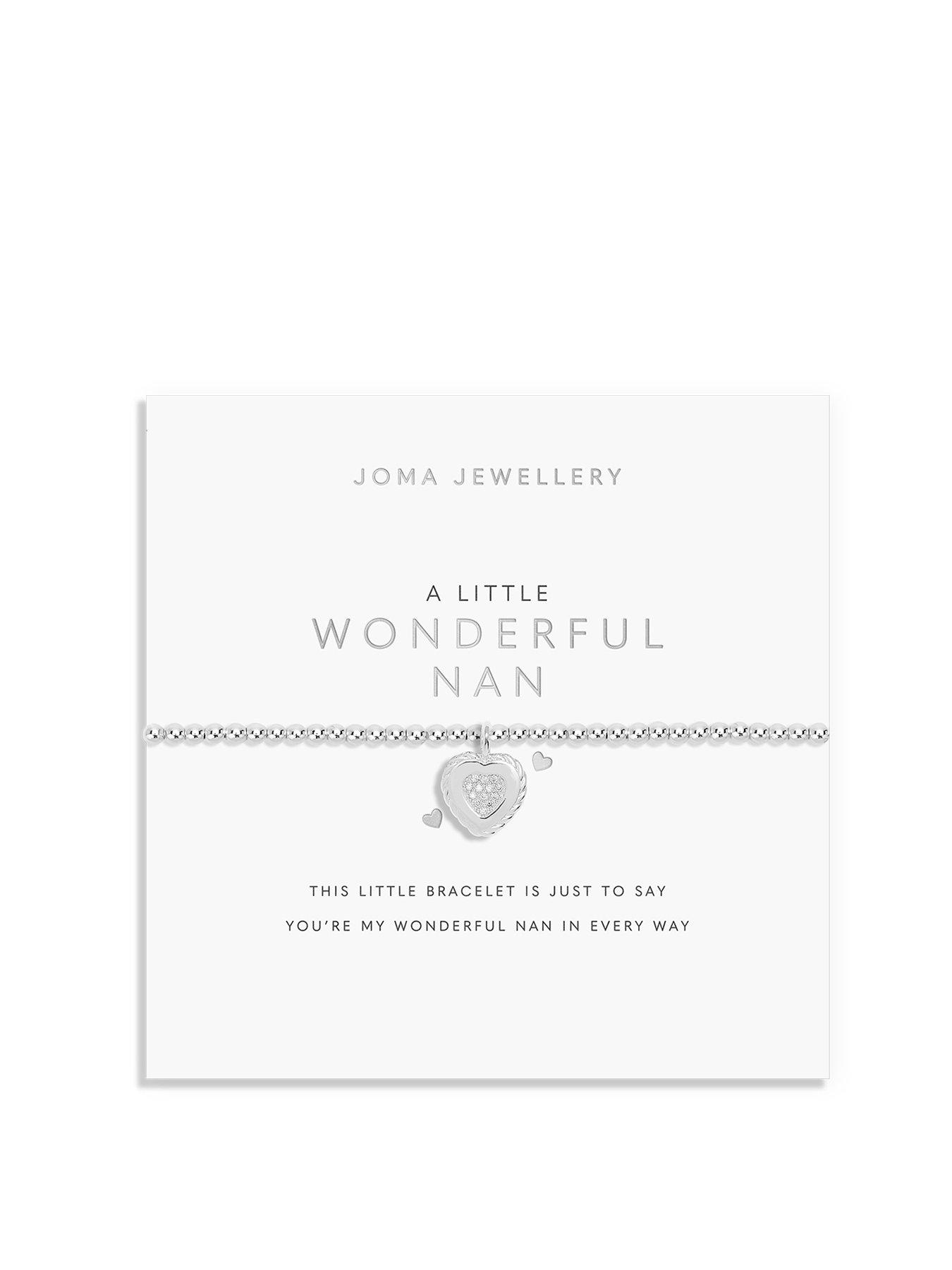Celebrate life's treasured moments with grandparents with Joma Jewellery's ever-growing collection of Grandparent A Littles. Featuring a beaded design that ensures a comfortable fit on any wrist and crowned with a special silver-plated heart charm to represent the love you share, the A Little 'Wonderful Nan' Bracelet In Silver Plating comes carefully wrapped around a sentiment-stamped presentation card, ready to make the sweetest addition to her stack.