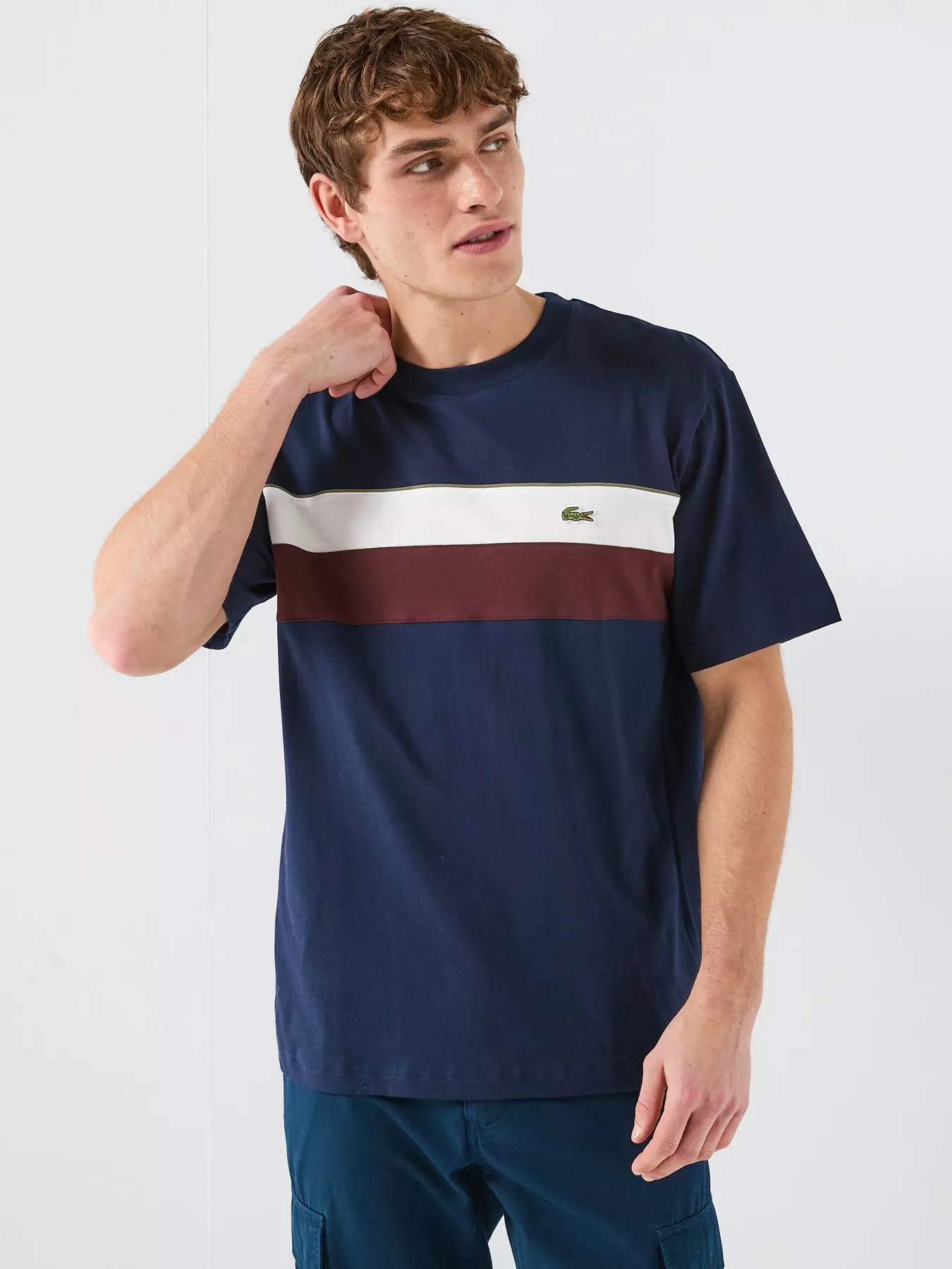 Jersey Colorblock T-shirt Cotton jerseyClassic fit, comfortable sleeves Cut-sewn colorblock panels on bust Contrast trim on chest Contrast trim on chestRibbed collarJersey Colour-Block T-shirtCotton jerseyClassic fit, comfortable sleevesCut-sewn colour-block panels on bustContrast trim on chestRibbed collarSewn-on embroidered crocodile on chest