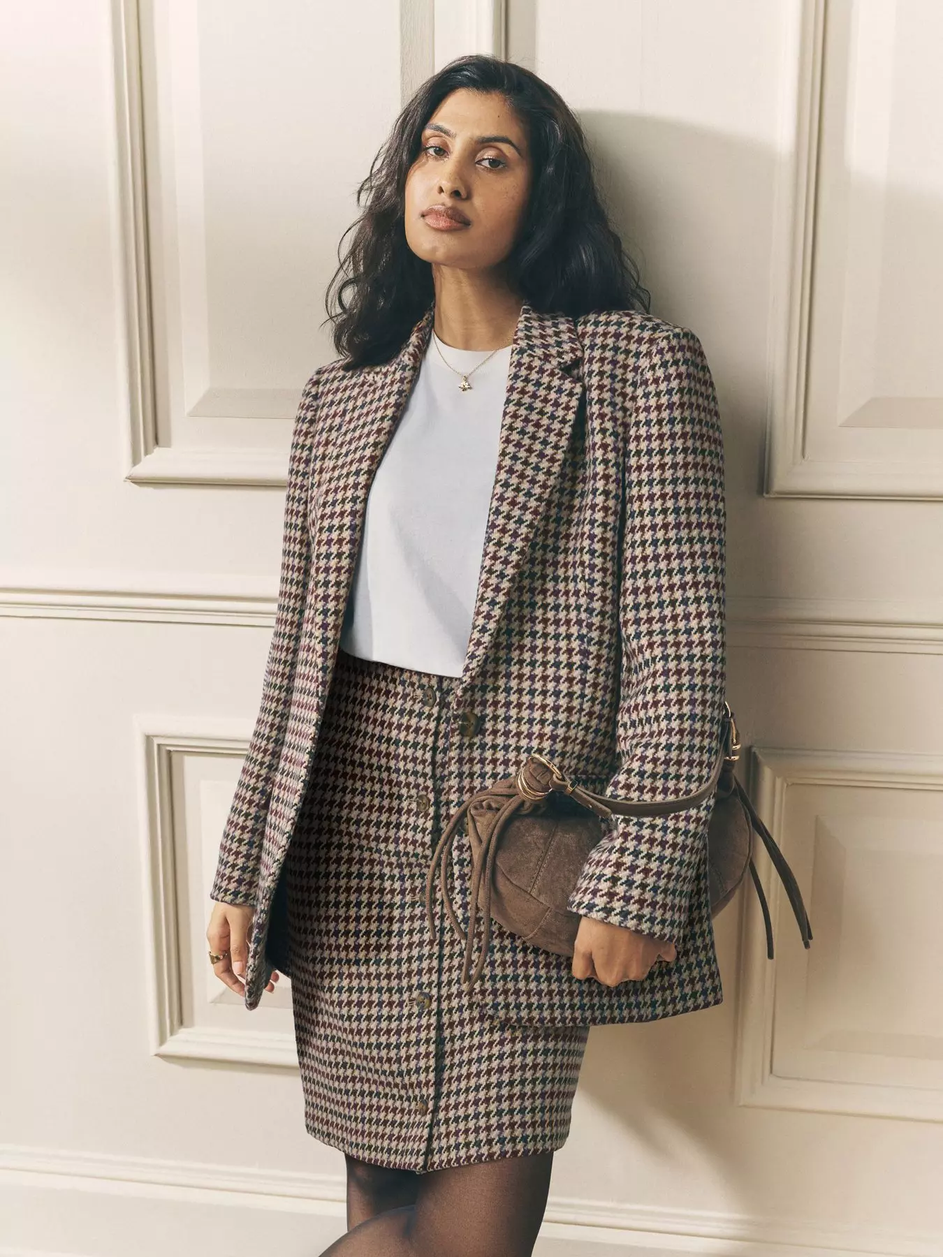 - Textured fabric with checked print