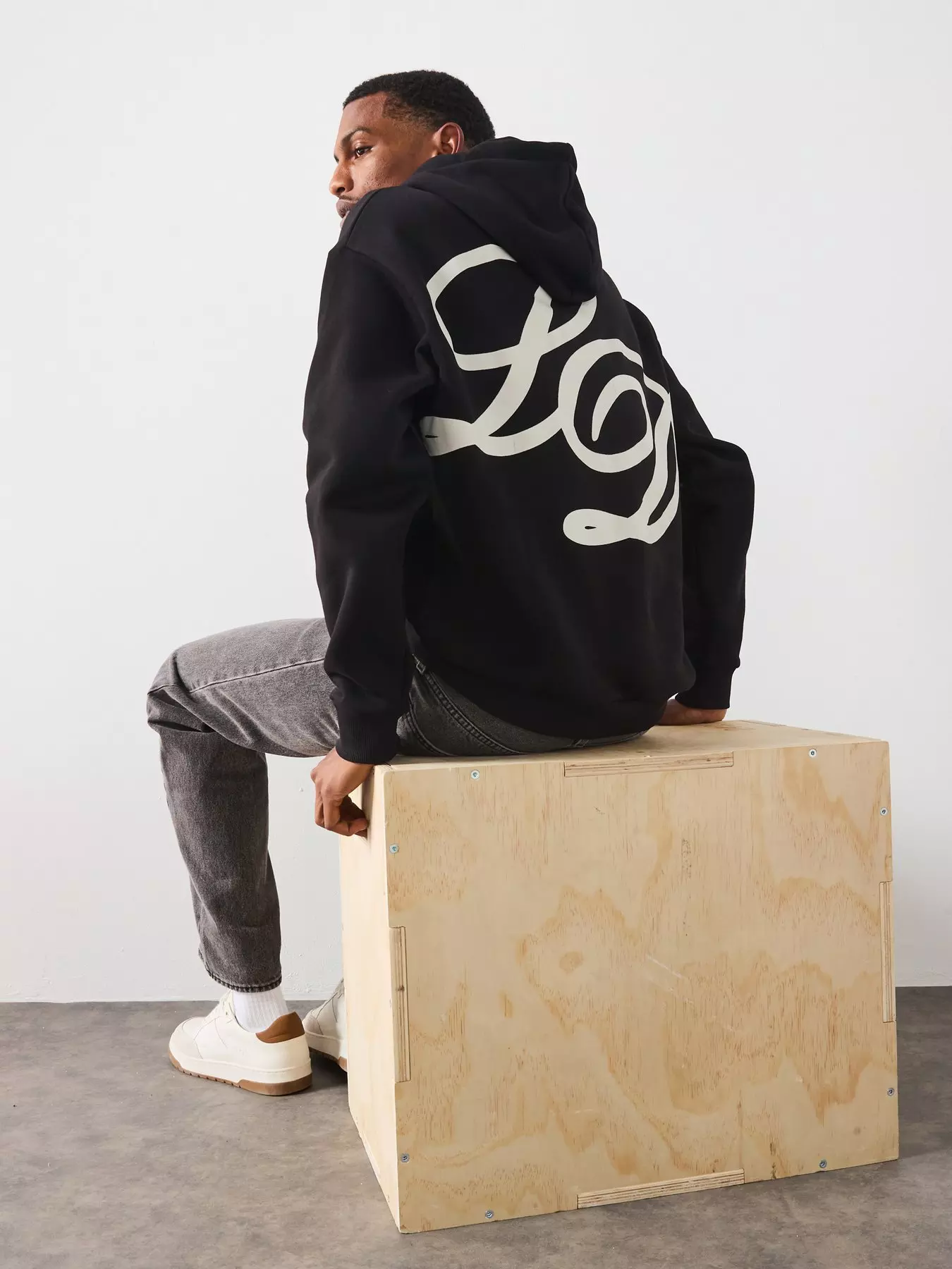 Les DeuxDanton Large Back Initial Overhead Hoodie - Black