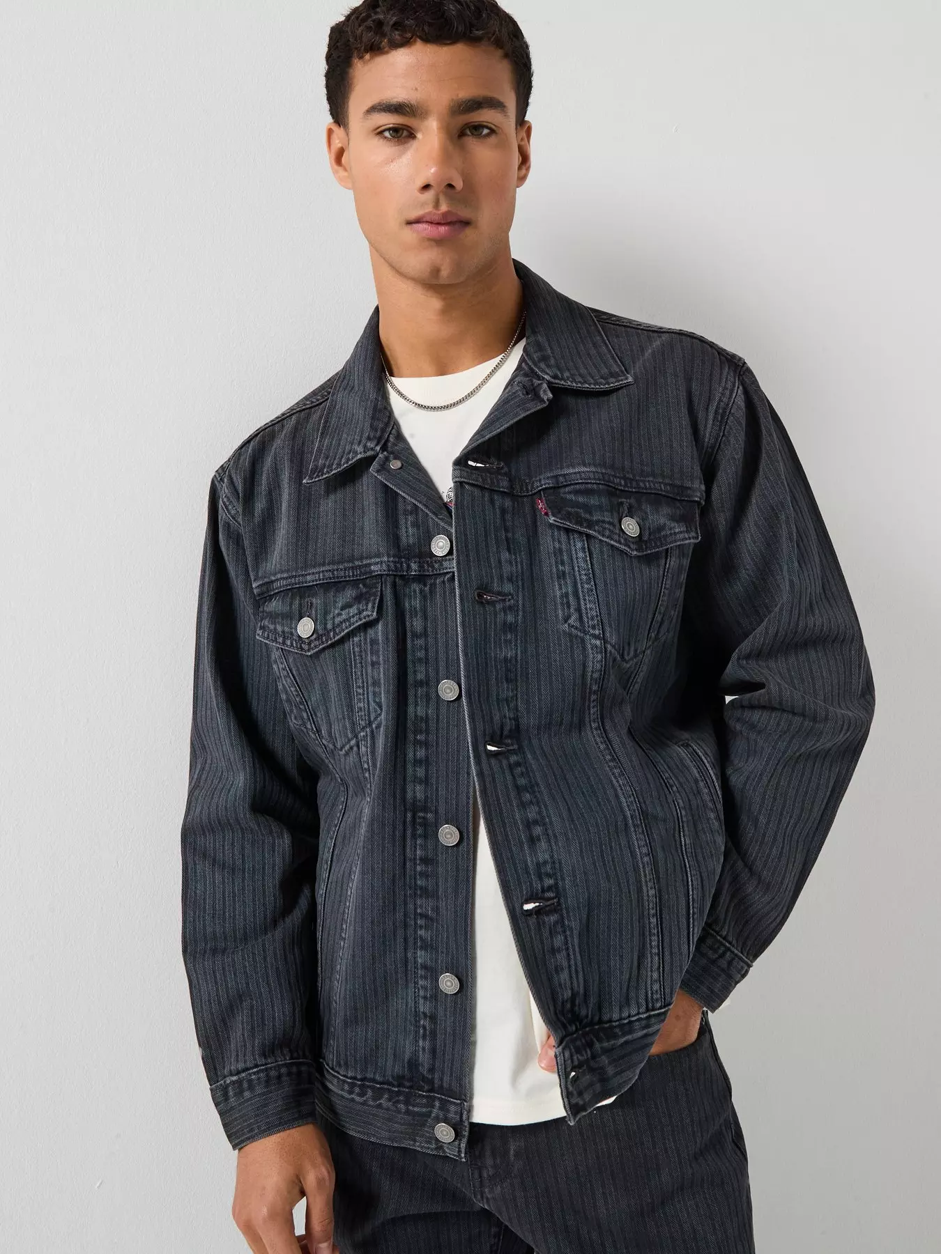 Levi'sRelaxed Fit Stripe Denim Trucker Jacket - Black