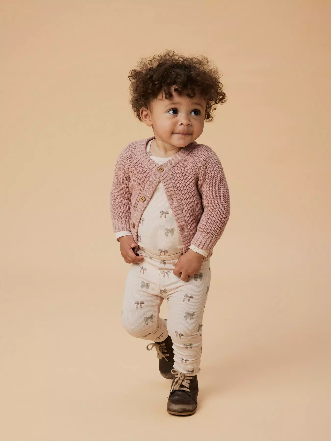 - Baby Girls Bow Print Leggings - Peony Bow by Lil Atelier
