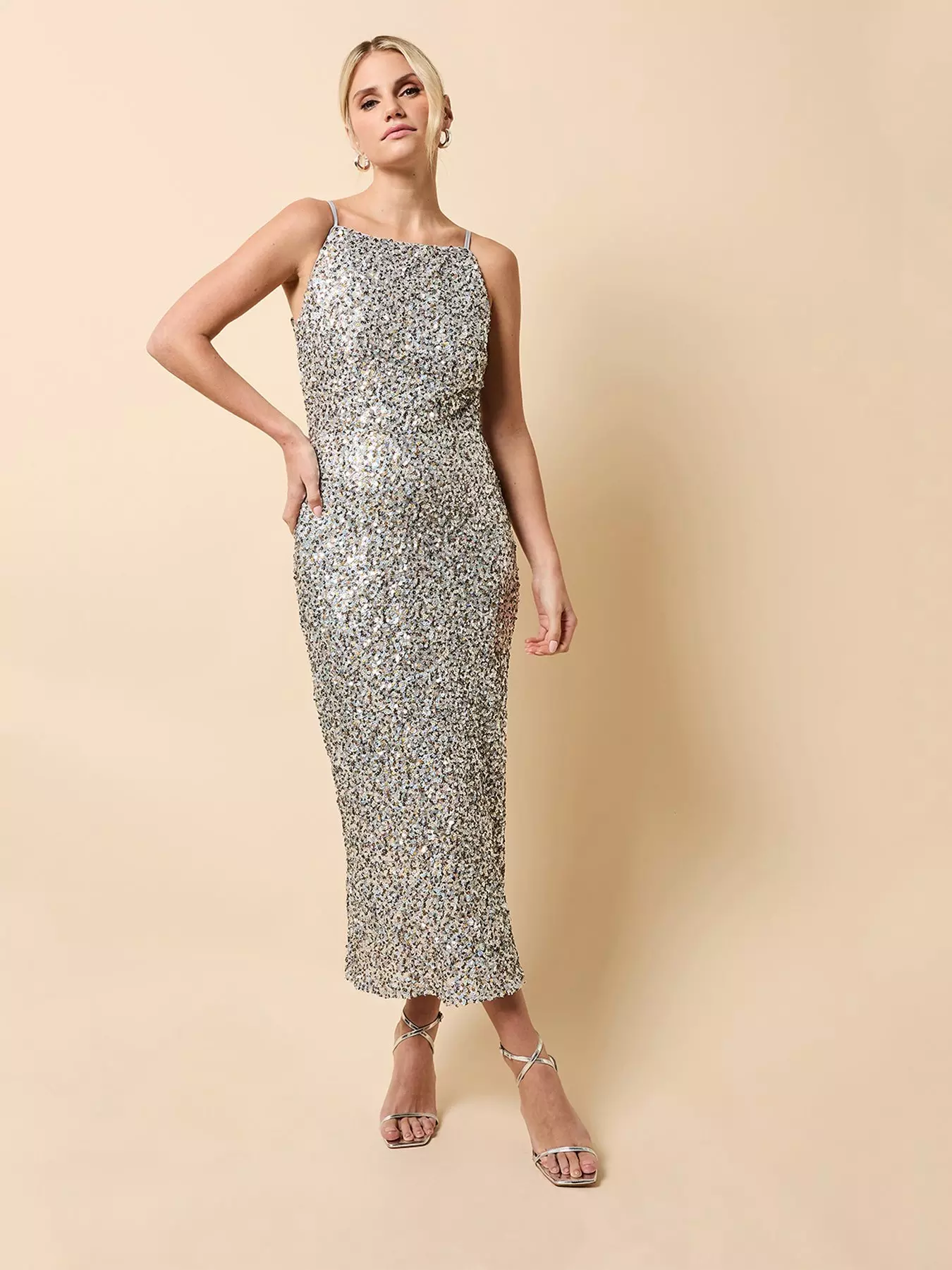 Little Mistress Silver And Gold Sequin Midaxi Dress